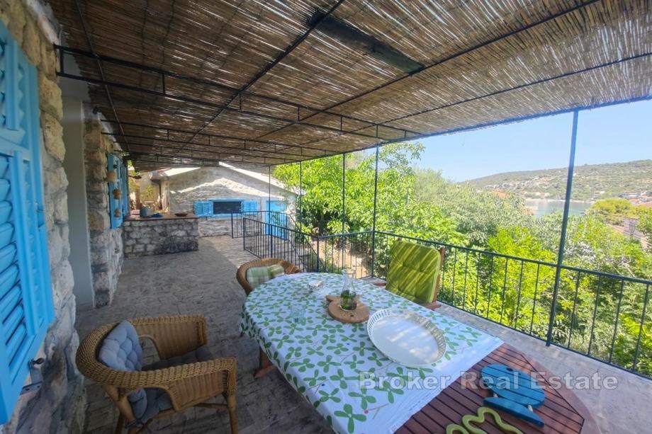 Na jednom od najmirnijih dalmatinskih otoka, poznatom po tirkiznim plažama i izuzetno čistom moru, smještena je ova šarmantna kamena kuća koja odiše autentičnim dalmatinskim duhom.