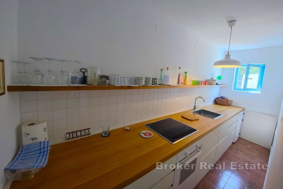– Na prvom katu smješten je potpuno opremljen i namješten trosobni apartman, povezan s velikom središnjom terasom i lijepo uređenim dvorištem. U sklopu okućnice nalazi se i dodatna kamena kućica preuređena u ljetnu kuhinju s velikim kaminom i blagovaonicom na otvorenom.