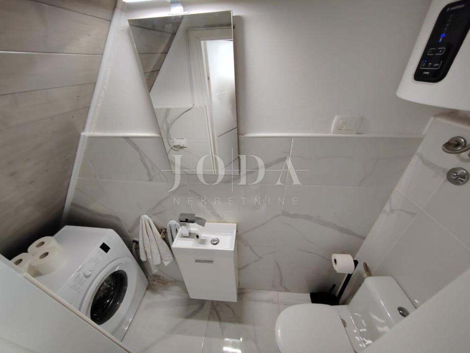 U prizemlju od 20 kvadrata smještena je u potpunosti opremljena kuhinja, dnevni boravak, wc i stepenište, te izlaz na terasu. Na katu iste kvadrature je kupaonica i spavaća soba te je u potkrovlju prostor koji možete koristiti po želji kao dodatni spavaći prostor,radni prostor ili lounge.