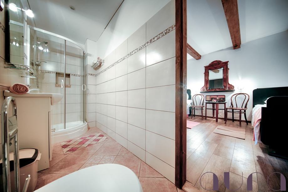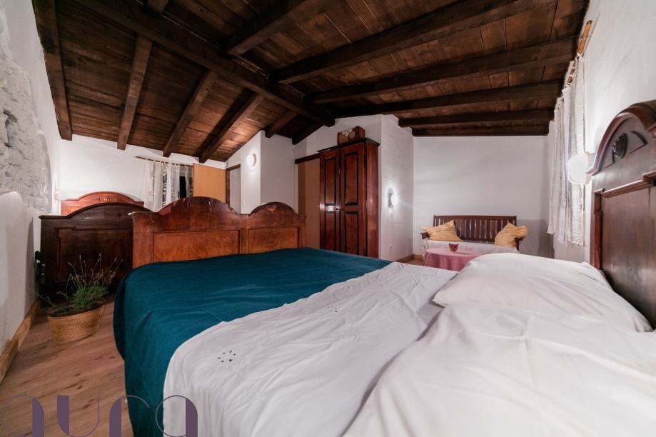 • Druga etaža ima zaseban ulaz, a pristupa joj se vanjskim stepenicama. Sadrži veliku komfornu sobu s dva kreveta, i kupatilo.