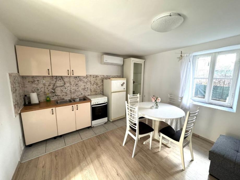 Prizemlje kuće čini kuhinja povezana s dnevnim boravkom u open space konceptu te kupaonica dok na katu imamo dvije spavaće sobe.