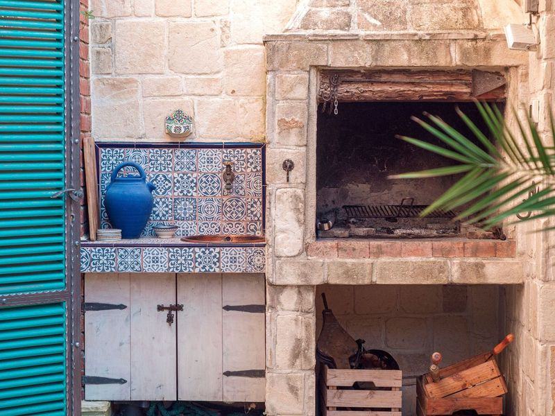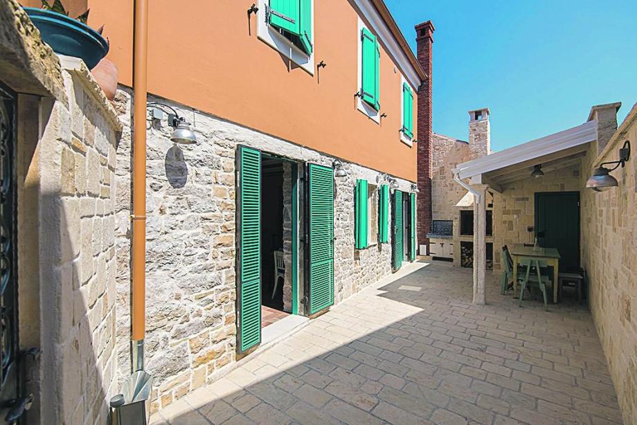 1-bedroom apartment on the ground floor with access to a private courtyard featuring a traditional stone grill
