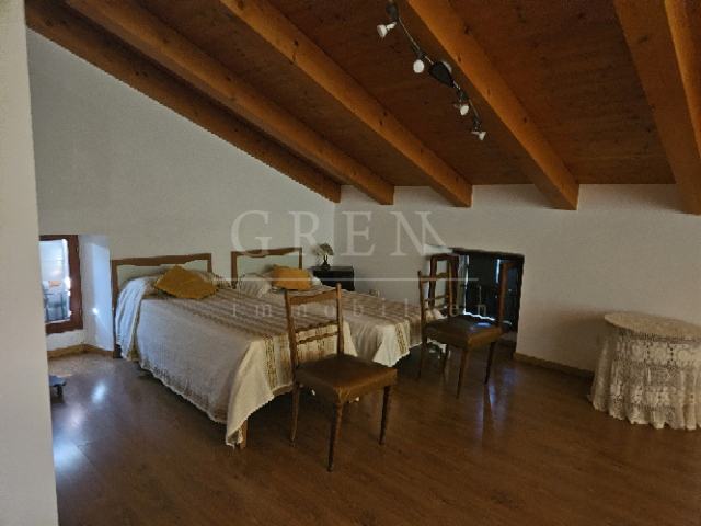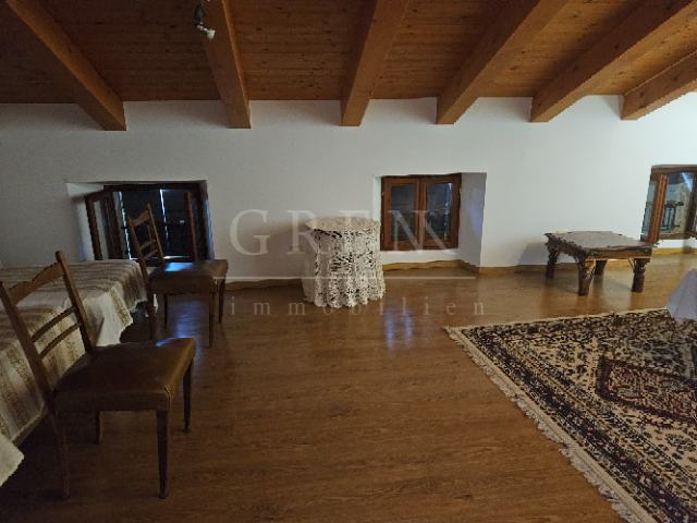 Kuća na tri etaže , u prizemlju je stan sa kaminom i jednom spavaćom sobom, kupatilom , kuhinjom , blagovaonom i dnevnim boravkom. Ulaskom s glavnog ulaza, vanjskim stepenicama se ide na prvi kat koji se sastoji od velikog dnevnog boravka-kuhinje, spavaće sobe i spavaće sobe s bračnim krevetom. Na istom katu nalazi se kompletna kupaonica s tuš kabinom. Iz dnevnog boravka se preko udobnih drvenih stepenica može pristupiti potkrovlju drugog kata. Potkrovlje je jako prostrano i visoko, nikad ne diraš glavu. Trenutno postoji bračni krevet i krevet za jednu osobu, ima toliko prostora da je moguće urediti i sobu za zabavu . U potkrovlju se nalazi kupaonica s kadom.