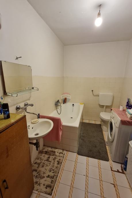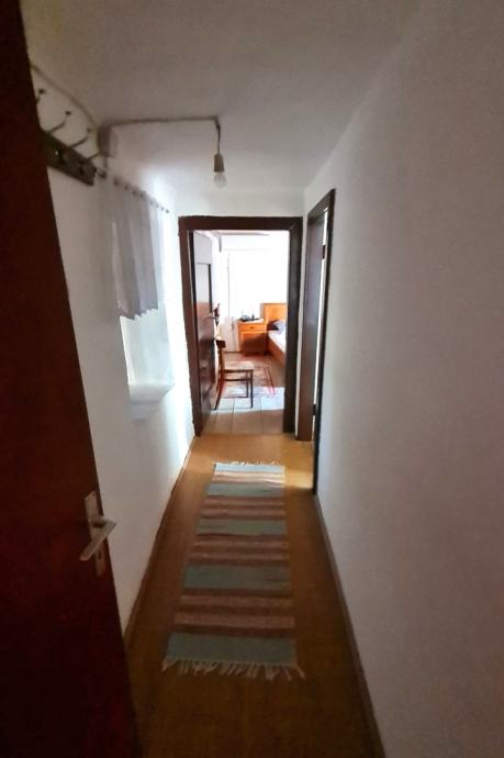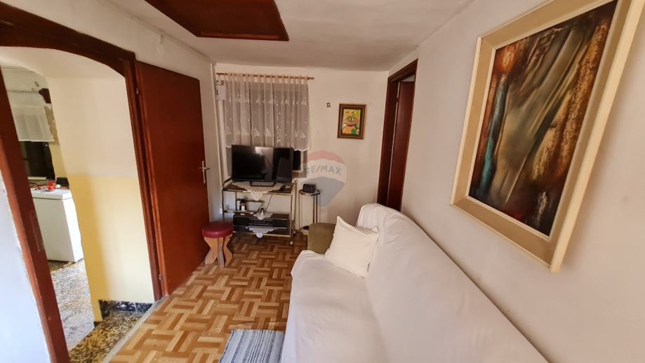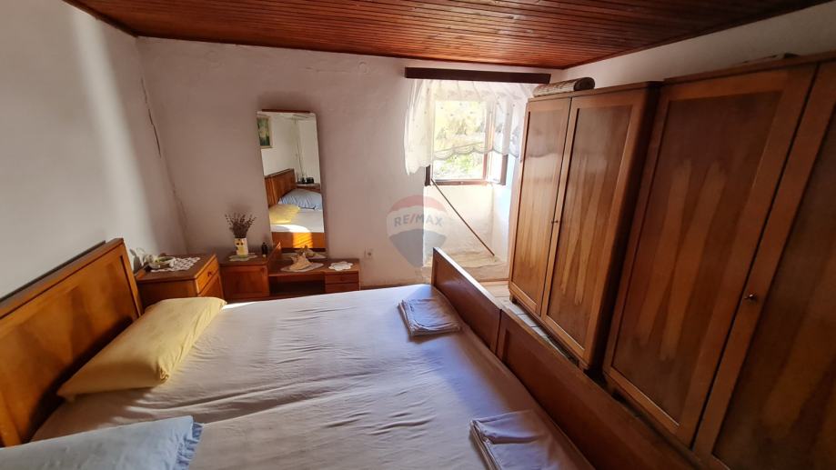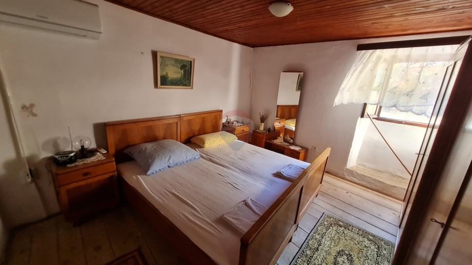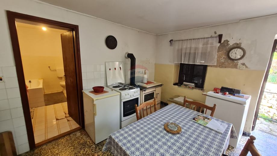 U kući je smješten dvosobni stan, površine 60m2 koji se sastoji od kuhinje s blagovaonicom,