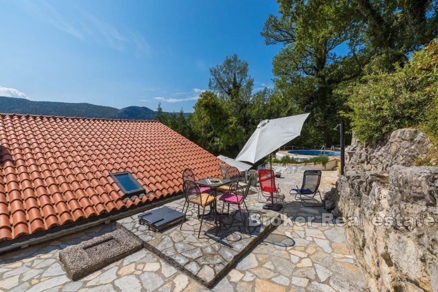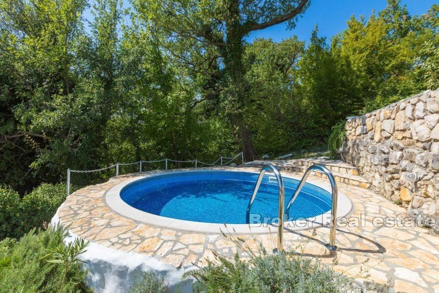 U lijepo uređenoj okućnici se nalazi osunčani bazen, te prostor za druženje s obitelji i prijateljima.