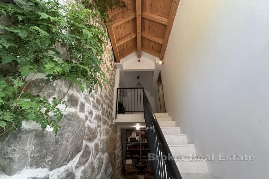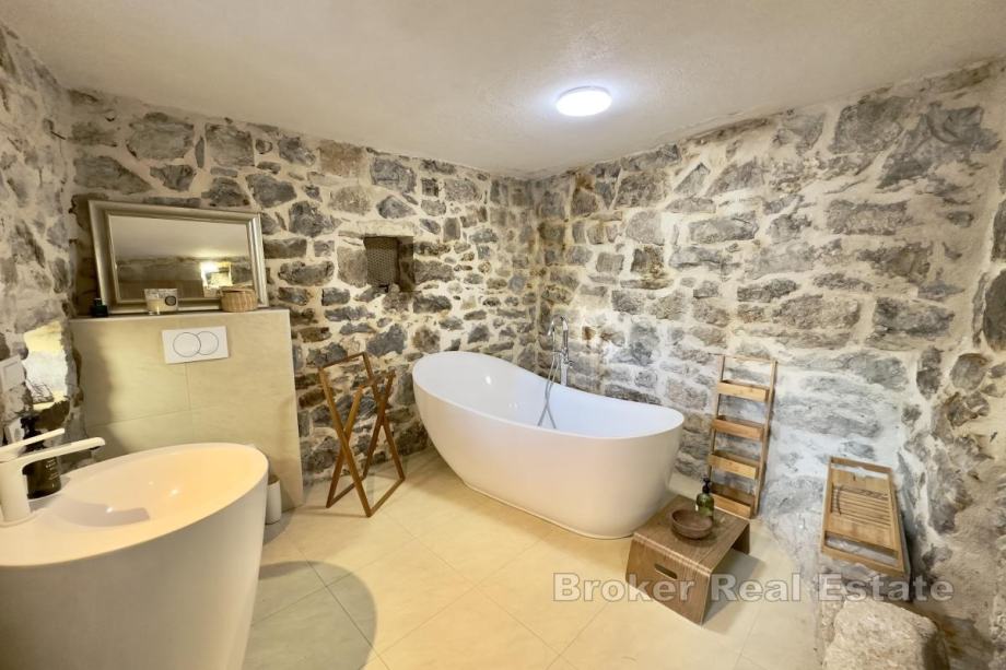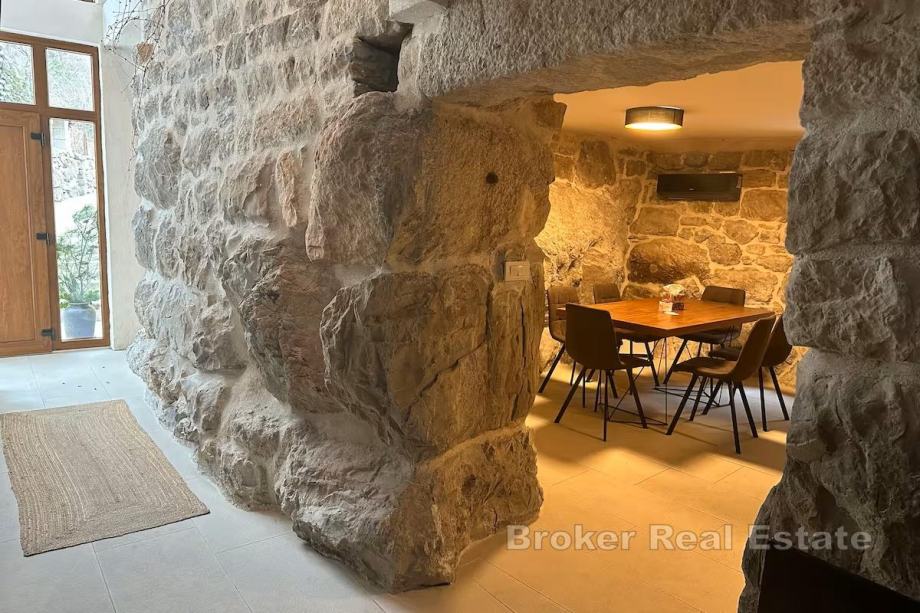 Kuća je nedavno kompletno renovirana i adaptirana. Izvorno je bila dvojna kuća, no estetski je spojena i uređena kao jedinstvena cjelina, idealna za odmor i turistički najam. S obzirom na mirnu lokaciju i blizinu svih sadržaja, kuća se može koristiti kao i obiteljski dom.