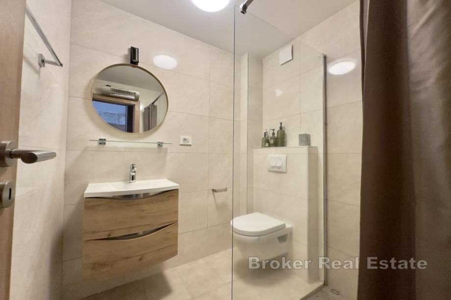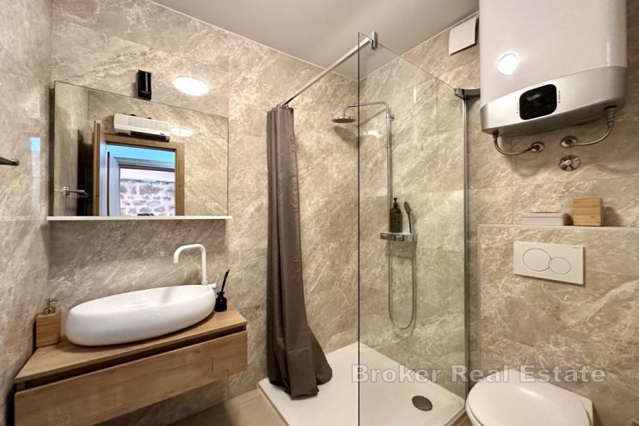 Sastoji se od dvije etaže. Na prvoj etaži nalazi se moderna kuhinja s blagovaonicom, jedna spavaća soba te dvije kupaonice. Na drugoj etaži smještena je još jedna spavaća soba s dva kreveta, dodatna kupaonica i prostrani dnevni boravak s izlazom na veliku terasu s pogledom na prirodu i okolicu.