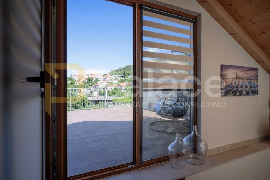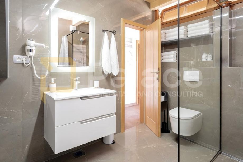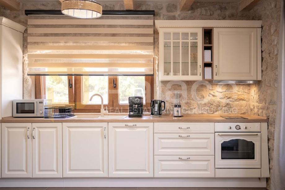 U prizemlju su smještene dvije spavaće sobe, dvije kupaonice, kuhinja i dnevni boravak iz koje se direktno izlazi na terasu. Na prvom katu je smještena jedna prostrana spavaća soba koja ima vlastiti balkon.