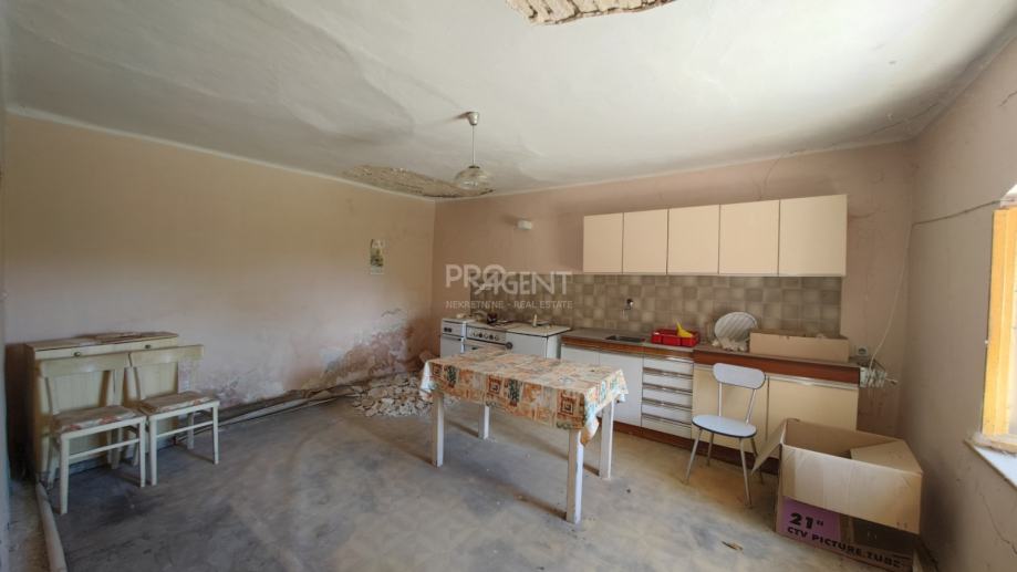 Kamena kuća u mirnom selu blizu Buzeta. Uz kuću je 4.200 m2 građevinskog zemljišta te dvije kamene štale s pripadajućom okućnicom, površine 400 m2.