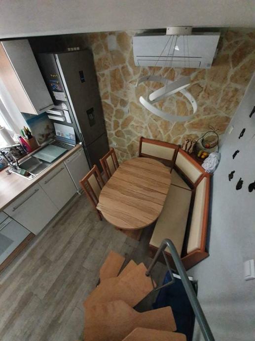 Prodajem prekrasno uređeno kameno kuću u Betini na Murteru, sa pogledom na more. Nalazi se u samom centru i sastoji se od prizemlja, koje se sastoji od ulaza, kuhinje sa blagovaonicom, wc i unutrašnje stepenice na prvi kat, onda je 1 kat gdje je spavača soba i unutrašnje stepenice na drugi kat gdje je kupaonica sa wc, dnevni boravak i unutrašnje stepenice u potkrovlje koje se sastoji od još jedne sobe i terase sa pogledom na more. Udaljenost od mora je cca.30 metara.