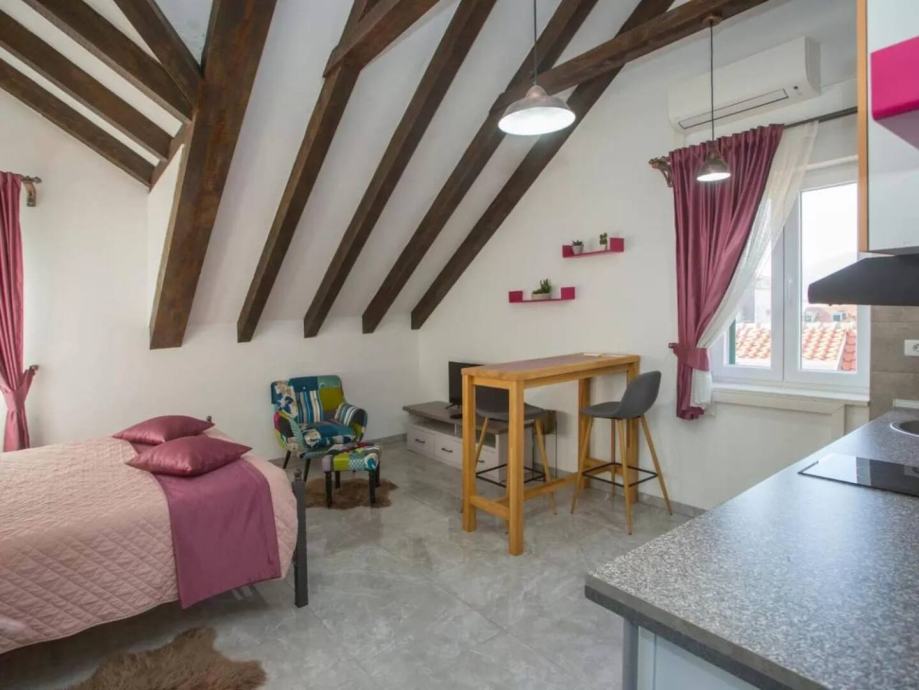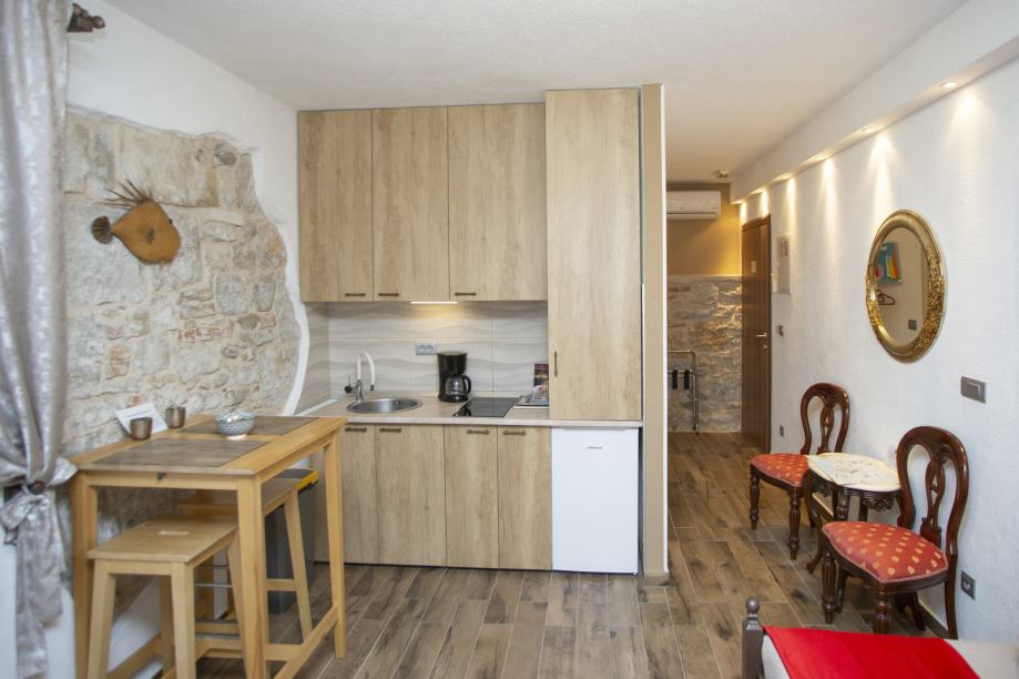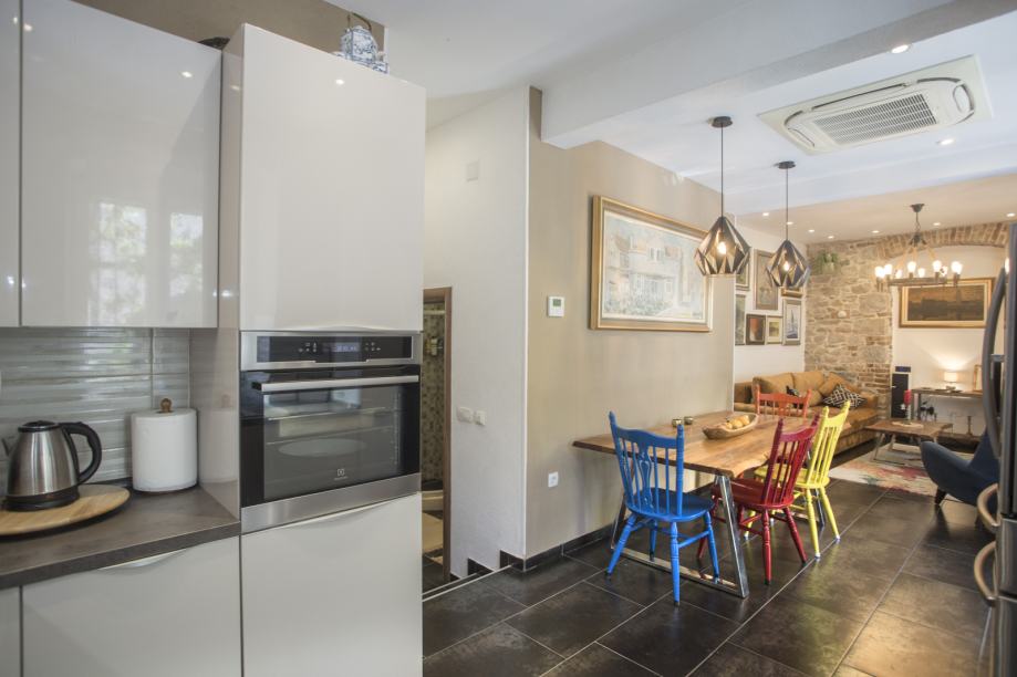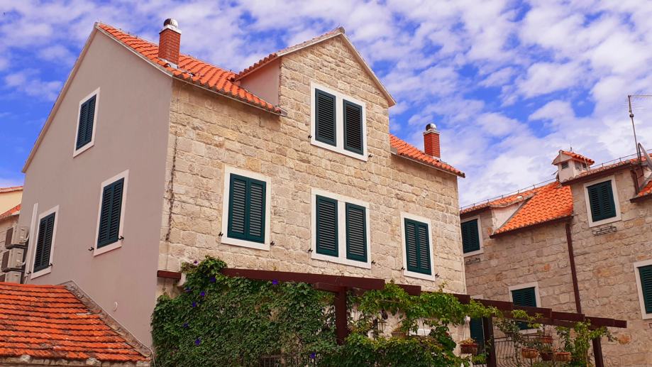 Prodaje se kamena kuća u centru grada. 5 odvojenih jedinica, stan u prizemlju sa dvorištem i dva parking mjesta plus 4 apartmanske jedinice, po dvije na svakom katu.