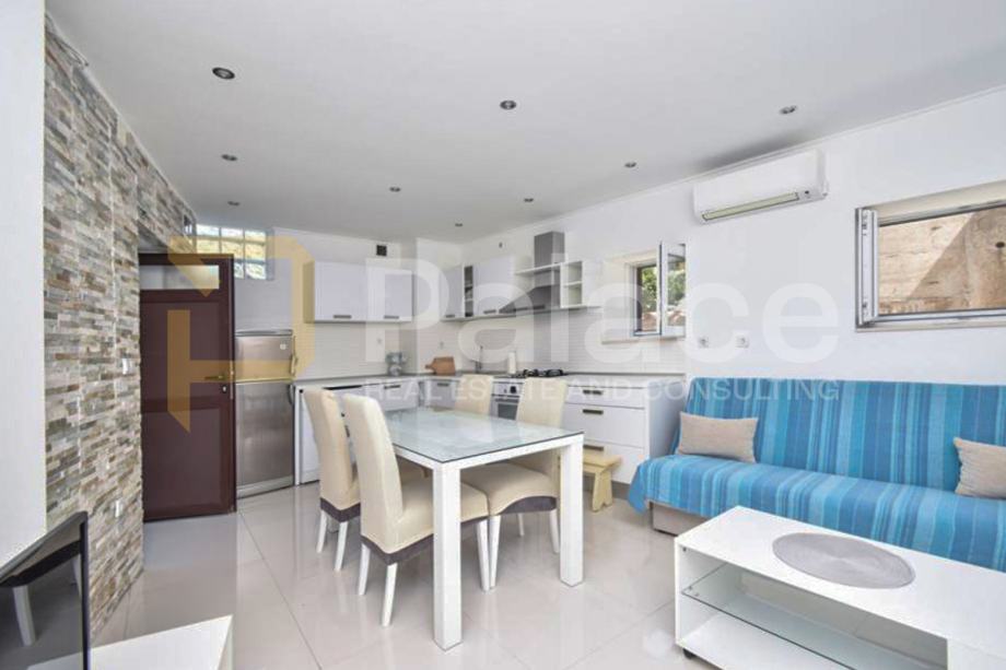 U prizemlju se nalazi potpuno renoviran jednosoban stan s vlastitom terasom, idealnim za jutarnje uživanje u kavi.