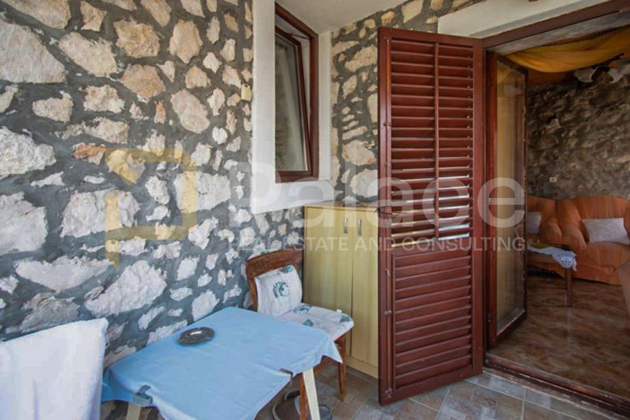 Vanjsko stepenište vodi do dvoetažnog stana. Na prvom katu smješteni su kuhinja, blagovaonica, kupaonica te prostrani dnevni boravak s izlazom na natkrivenu terasu. Unutarnje stubište vodi na drugi kat, gdje se nalaze tri prostrane spavaće sobe i dvije moderne kupaonice. Dvije spavaće sobe imaju vlastite terase s prekrasnim pogledom na more i Krapanj.