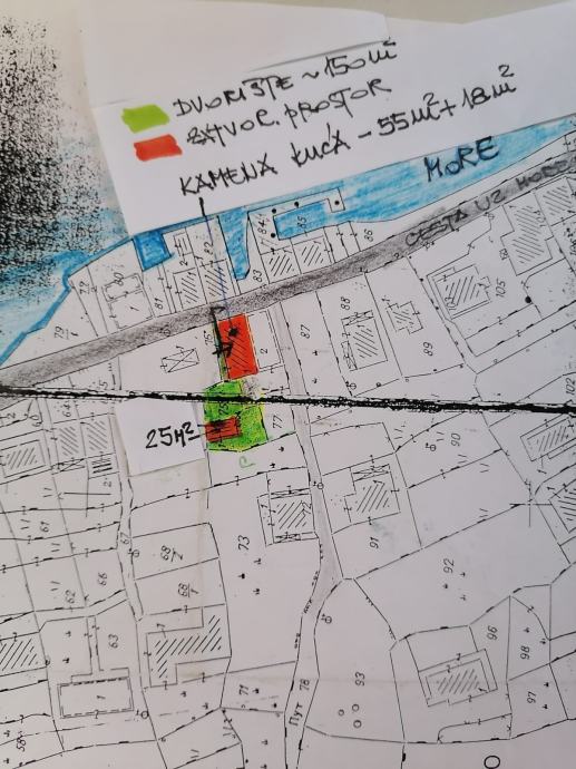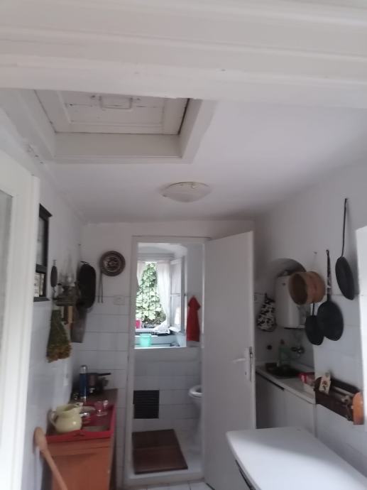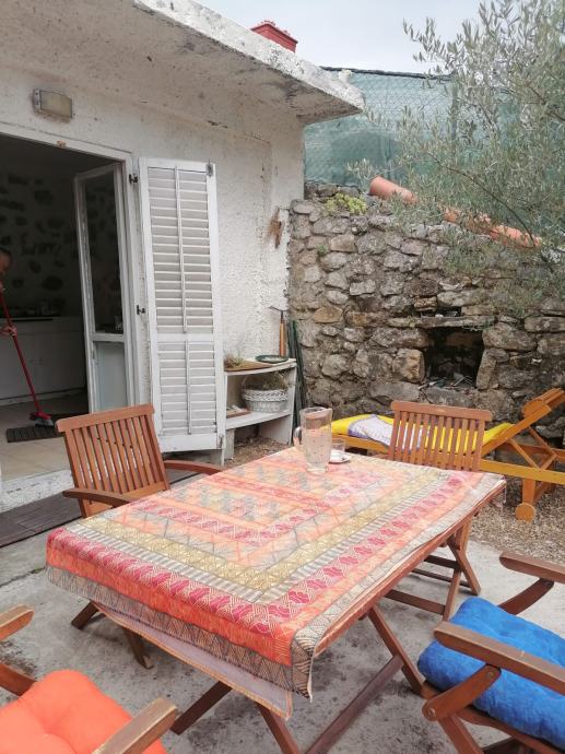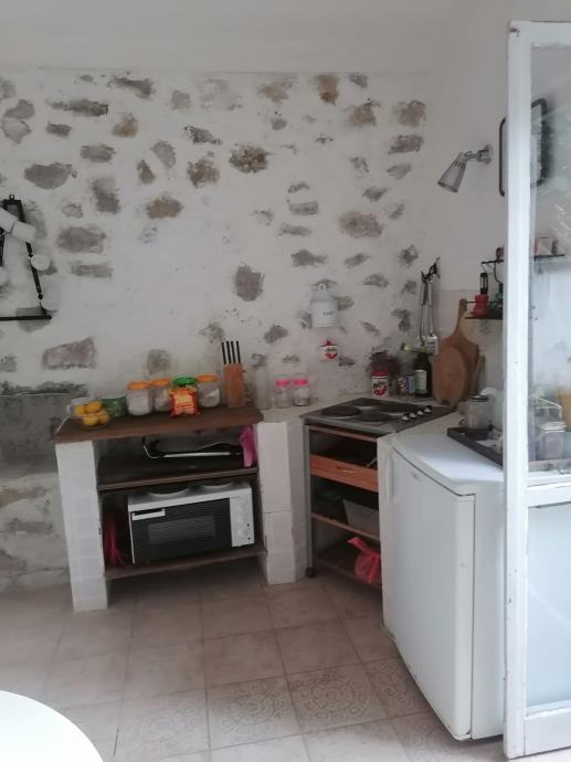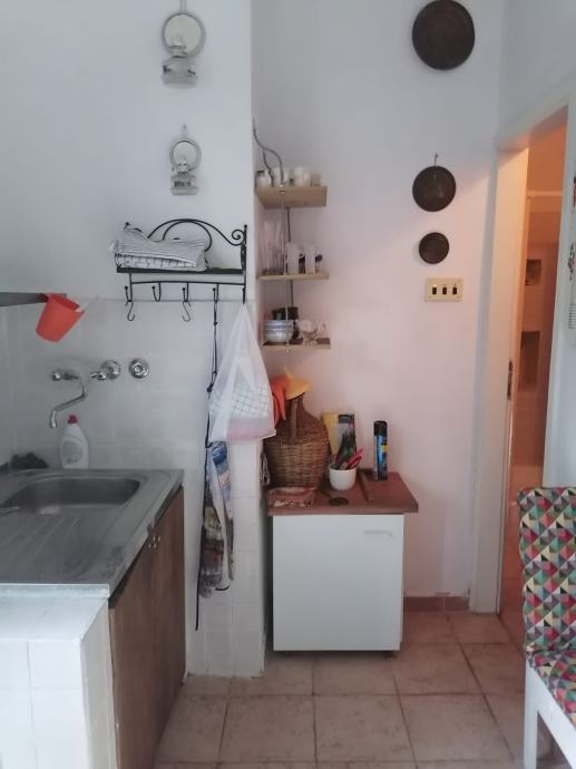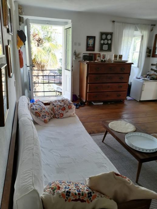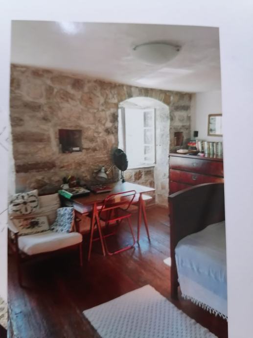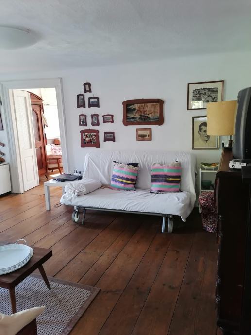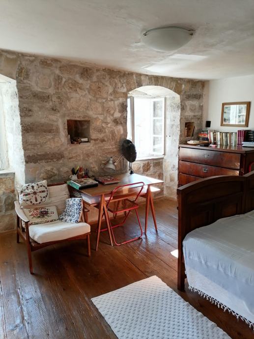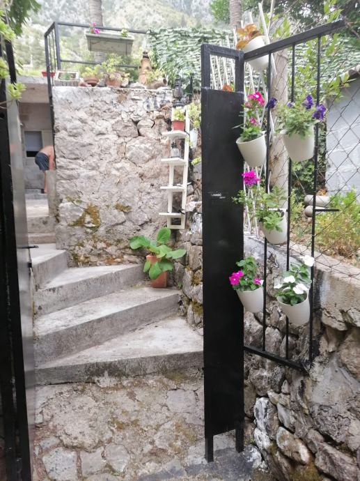 Nekretnina se sastoji od 2 odvojene cjeline. Prvi dio se sastoji od stana veličine 55 m2 (s tavanksim prostorom) u kojem se nalaze 2 spavaće sobe (jedna s pogledom na more, druga s pogledom na dvorište), dnevnog boravka, pomoćne kuhinjice i kupaone. Do apartmana se dolazi stepenicama iz dvorišta.