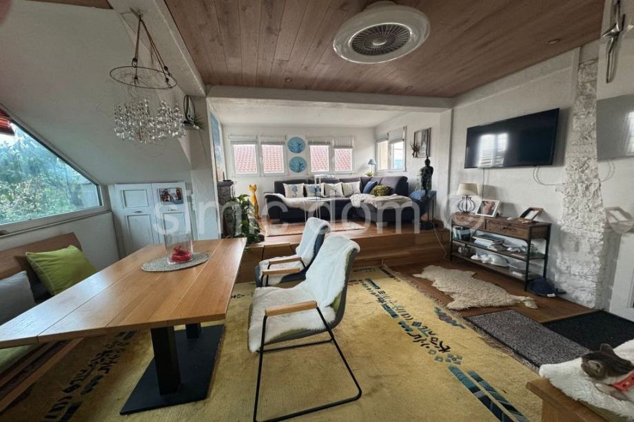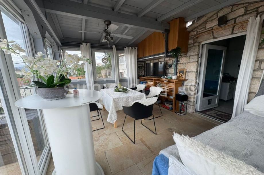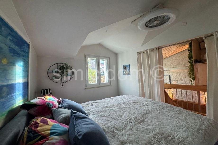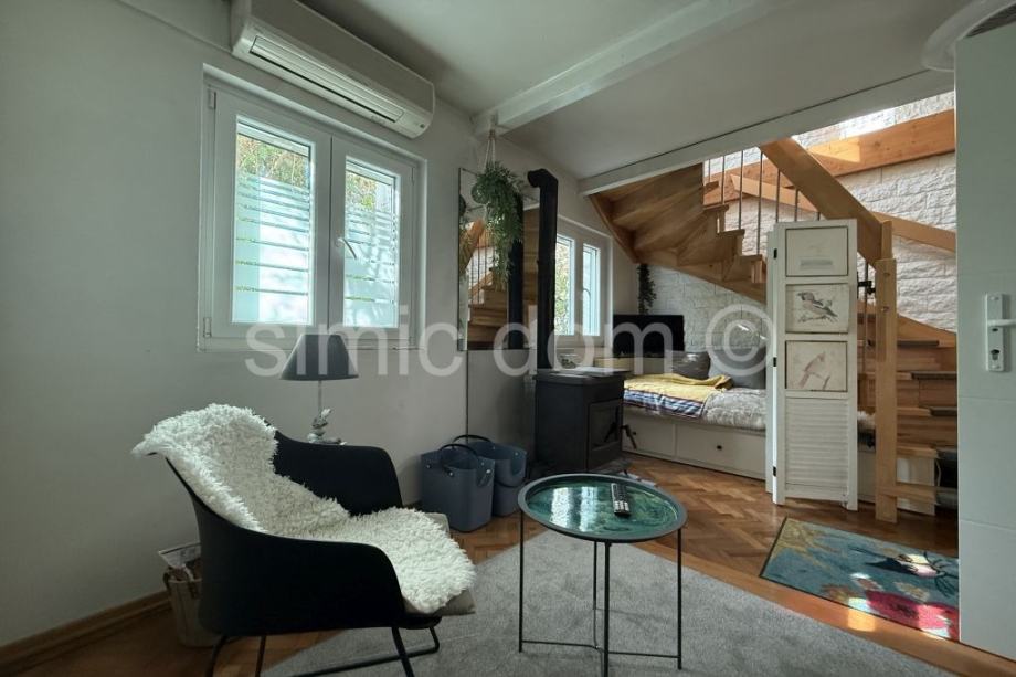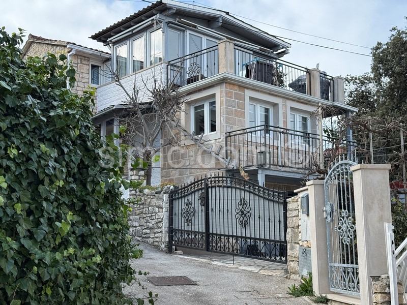 Posredujemo u prodaji kamene kuće u Supetru na lijepoj i mirnoj lokaciji tek par minuta udaljenoj od centra grada i plaže. Kuća je izgrađena na parceli od 86,56 m2 te se sastoji od tri etaže, a to su suteren, prizemlje i kat. U suterenu nalazi se podrum i odvojena s praonicom za rublje. Vanjskim stepeništem dolazimo na etažu prizemlja koje se sastoji od kuhinje , dnevnog boravka s blagovaonicom, ostave, kupaonice i sobe. Drvenim stepeništem dolazimo do etaže prvoga kata .Tu su položene dvije sobe od kojih je jedna spavaća, a druga služi kao radna, kupaonice, zimskog vrta i malog balkona. Iskoristiva površina kuće je oko 110 m2. Kuća je dvojni objekt u dobrom i održavanom stanju. Grijanje i hlađenje organizirano je uz pomoću klima uređaja na svakoj etaži po jedna jedinica, a u hladnijim zimskim danima može se koristiti kamin. Parking za jedno manje auto. Kuća se prodaje sa namještajem.