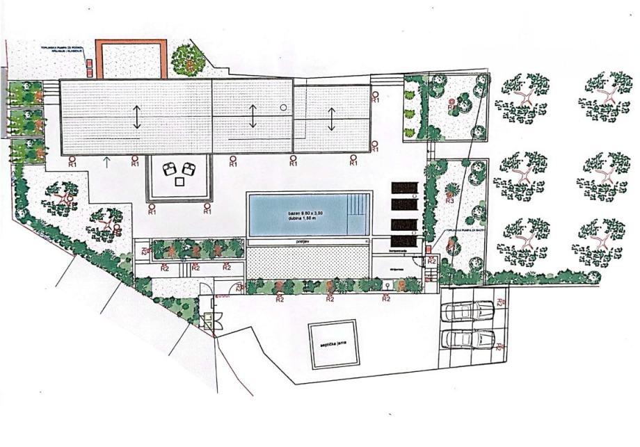 Ukupna brutto površina kuće sa terasama, bazenom i ljetnom kuhinjom iznosi 317,40 m2.