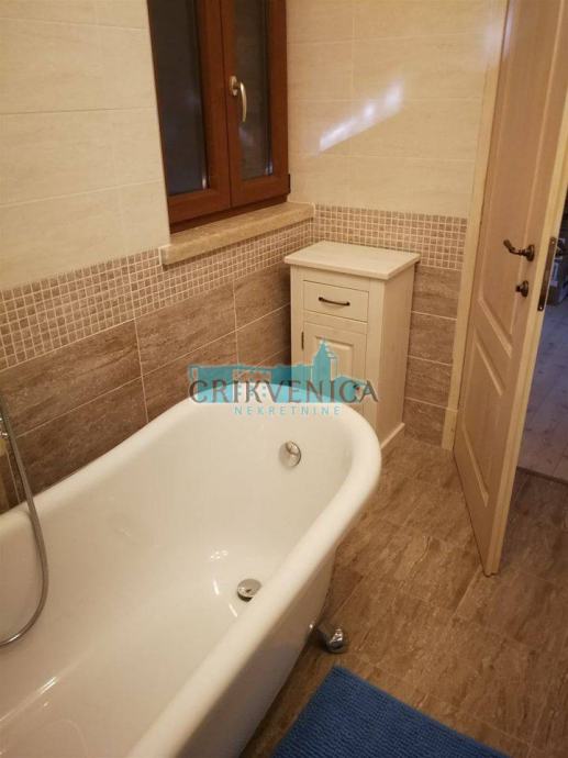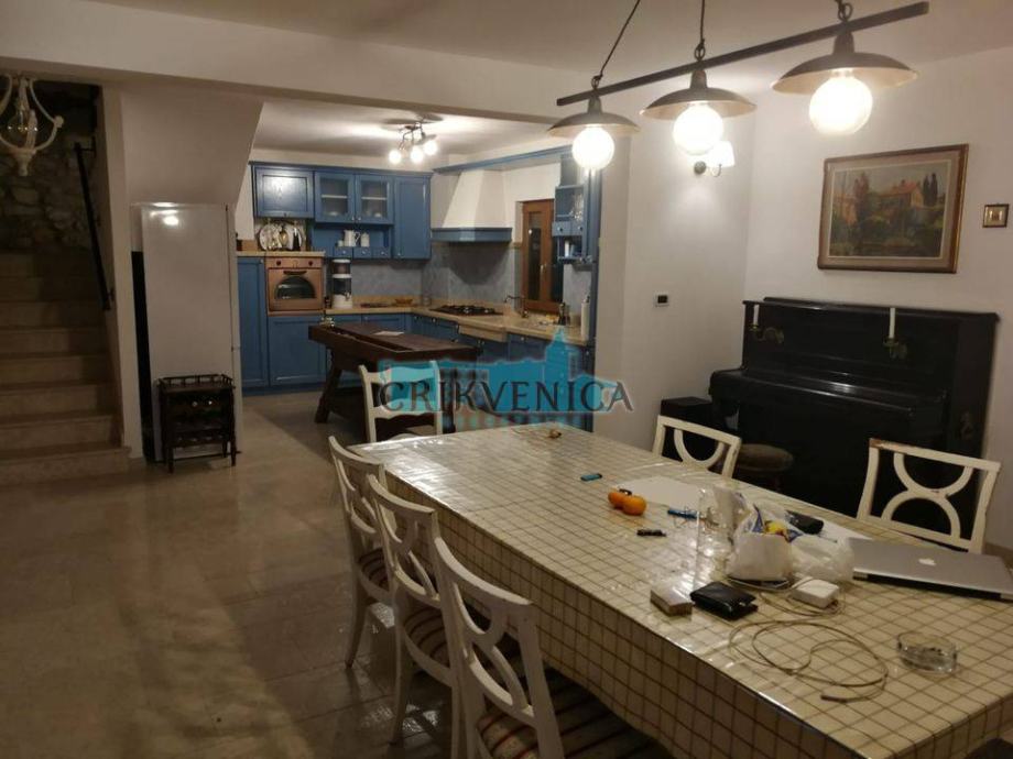 Stambeni prostor čini ukupno 265 m2 koji se proteže na prizemlje, kat i visoko potkrovlje. U prizemlju je veliki dnevni boravak, kuhinja koja je rađena po mjeri (radna ploča i sudoper od kamena), blagovaonica, jedna spavaća soba te kupaonica. Unutarnjim stepenicama dolazimo do kata gdje su dvije spavaće sobe te kupaonica sa hidromasažnom kadom, dok su u potkrovlju još dvije spavaće sobe sa većom terasom i prekrasnim pogledom. Kuća je većinom namještena antiknim namještajem (vlasnik je bio pomorac pa ima sentimentalnu vrijednost), te se ne prodaje kompletno namještena. Pored glavne kuće postoji i mala pomoćna zgrada gdje je uređen jednosobni apartman. Nekretnina je građena najkvalitetnijim materijalom, sa iskusnim izvođačima. Grijanje je centralno na plin, a ima i peć na pelete.