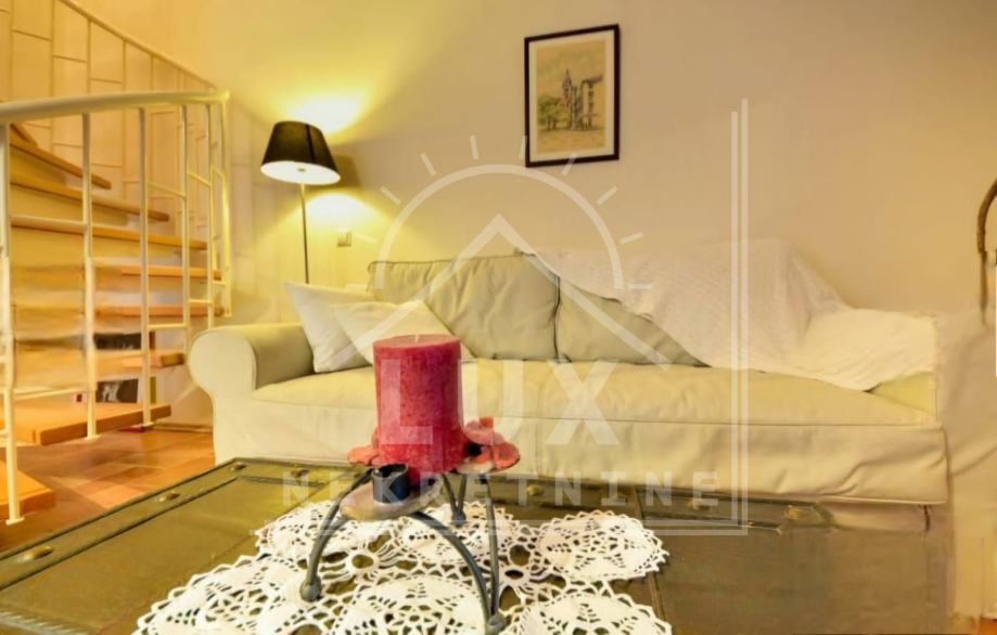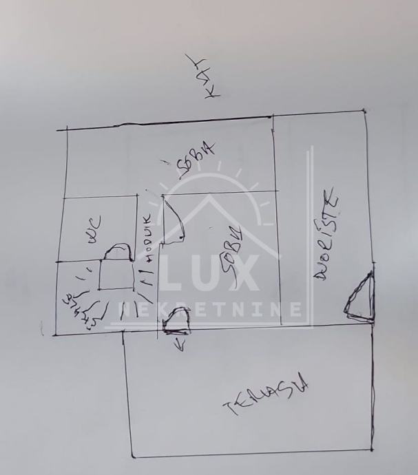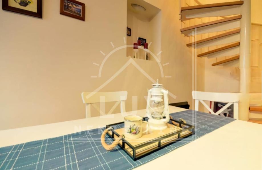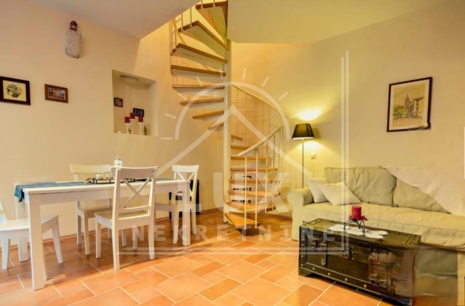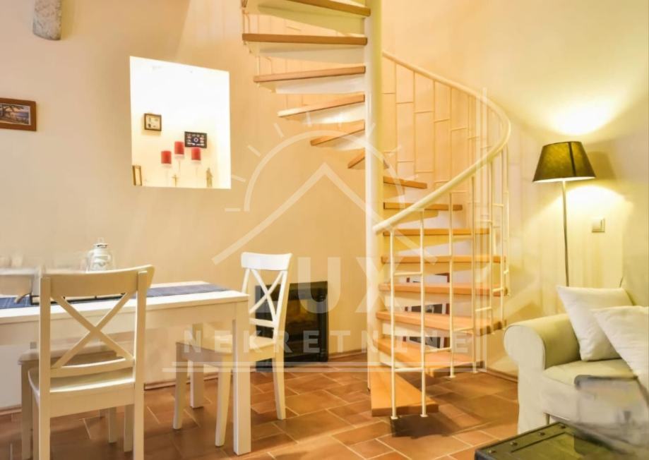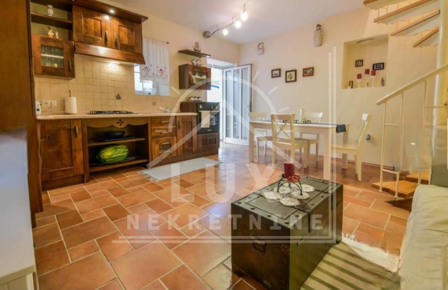 Sastoji se od prizemlja i kata. U prizemlju se nalazi zatvoreno dvorište u koje se ulazi s ceste, kuhinja s dnevnim boravkom i blagovaonicom, kupaonica i ostava. Iz dnevnog boravka spiralnim drvenim stubištem se dolazi na kat. Kat sadrži: predsoblje, dvije spavaće sobe, WC i terasu.
