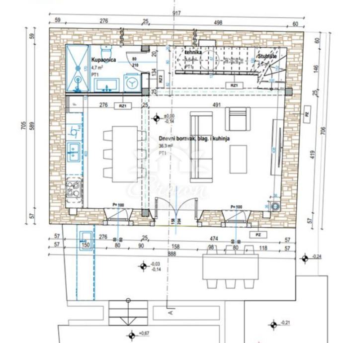 Na prodaju je kuća u fazi visoke roh-bau izgradnje s ishođenom pravomoćnom građevinskom dozvolom i uredno prijavljenim početkom gradnje. Izvedena je armirano-betonska podna ploča te armirano-betonska međukatna konstrukcija s betonskim stepenicama. Postavljena je nova drvena krovna konstrukcija sa svim pripadajućim slojevima, a kao završni pokrov ugrađen je crijep Mediteran. U prizemlju je izgrađen pregradni zid za WC, dok su prema projektu izvedena četiri nova otvora uz ugradnju starih erti na vanjskom pročelju, čime je zadržan autentičan izgled objekta.