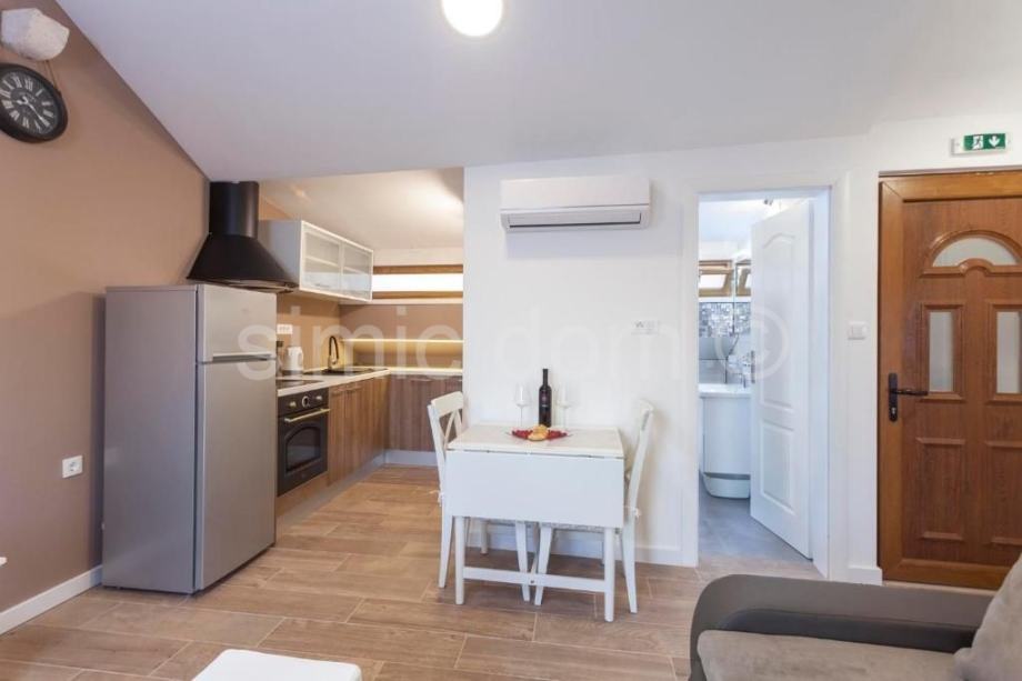 Posredujemo u prodaji uistinu jedinstvene nekretnine, potpuno rekonstruirane i renovirane kamene kuće u prvom redu do mora (kuća u nizu) u jednom od najšarmantnijih mjesta Makarske rivijere. Ukupna je površina kuće 105m2 te se sastoji od tri jednosobna apartmana koji se protežu etažama prizemlja te prvog i drugog kata. Svaki apartman ima spavaću sobu, kupaonicu te lijep dnevni boravak s kuhinjom. Gornja dva apartmana imaju i balkone s kojih se pruža prekrasan, otvoren pogled na more, Pelješac i cijelo područje. Riječ je o temeljito rekonstruiranoj nekretnini koja je prepuna tradicionalnih detalja, dok pažljiv odabir detalja za renovaciju jamči vrhunsku kvalitetu izvedbe. Centralna lokacija odmah do mora, prekrasan pogled te nekretnina kojoj ne treba daljnja renovacija čine ovu kamenu kuću izvrsnim izborom za posao najma. Vlasništvo uredno.