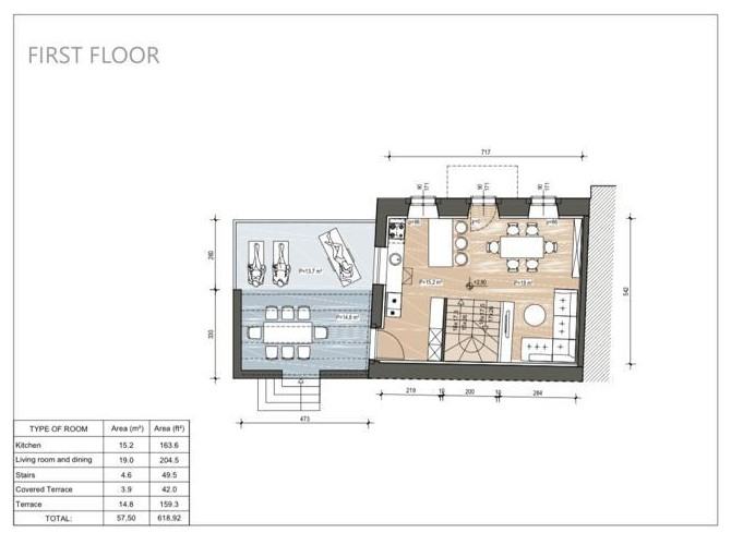 Prvi kat: Kuhinja, dnevni boravak, terasa s pogledom na more