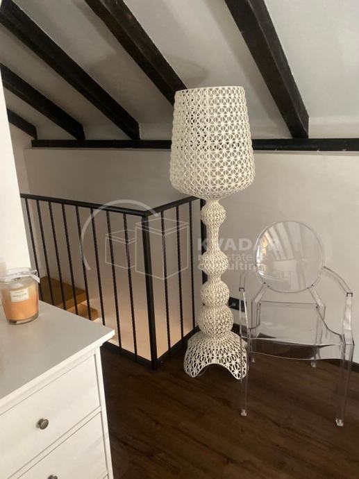 U prizemlju se nalazi kuhinja , trpezarija i dnevni boravak, na prvom katu je jedna spavaća soba koja izlazi na mali balkon i kupatilo sa toaletom, a na drugom je još jedna spavaća soba.