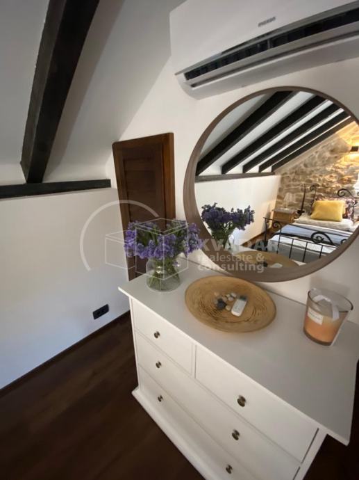 Početkom 2023 je završeno temeljito, izuzetno kvalitetno, kompletno renoviranje kuće uz korištenje autothonih, prirodnih materijala koji su originalnim designerskim rješenjima uklopljeni u ambijent, a sve uz maksimalno poštivanje konzervatorskih zahtjeva.