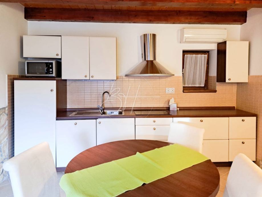 U prizemlju je smješten hodnik, kuhinja sa blagovaonom i dnevni boravak.