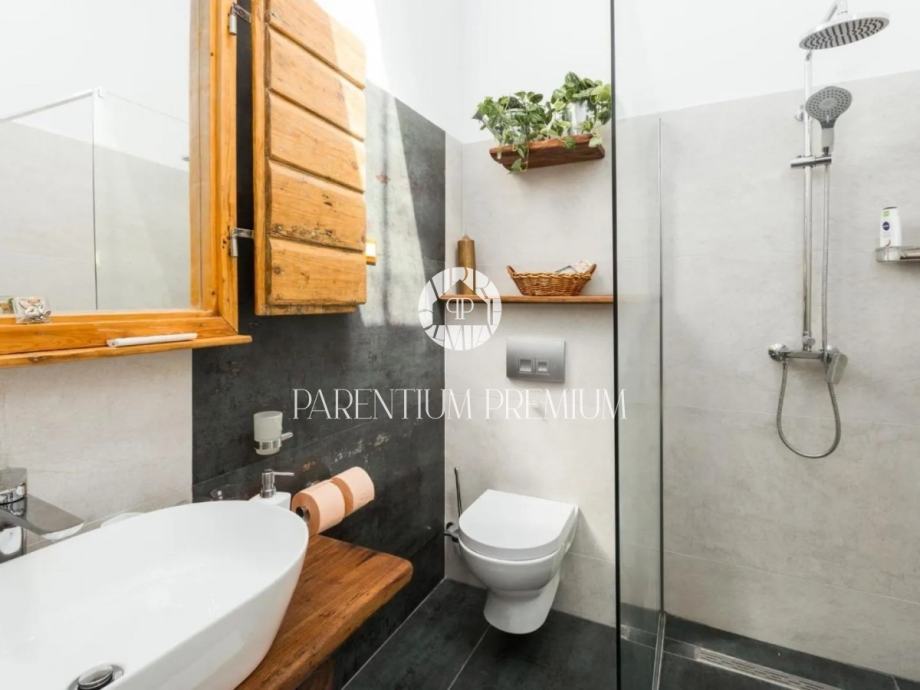 Prvi stan u prizemlju je lijepo uređeni i kompletno renovirani apartman koji se sastoji od dvije spavaće sobe, kupaone, dnevng boravka sa kuhinjom i blagovaonom.