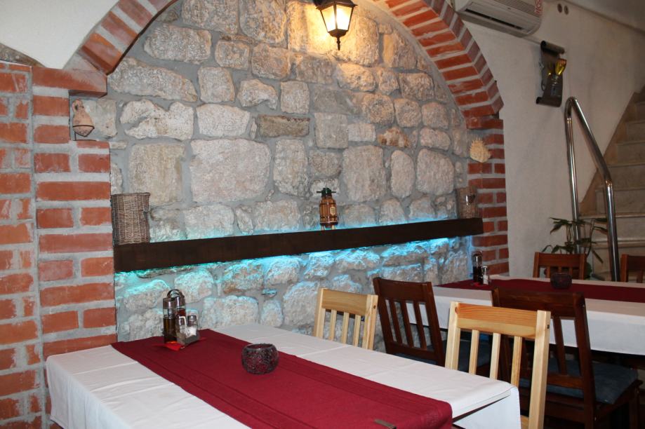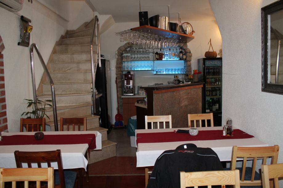 Kuća se sastoji od prizemlja i kata sa izlazom terasu površine 35m2. U prizemlju je restoran (35m2) kapaciteta 20 sjedećih mjesta unutra i 20 mjesta na vanjskoj terasi (koncesija). Unutarnjim stepeništem se ide na prvi kat (35m2) na kojem se nalazi kuhinja, ostava i sanitarni čvorovi.Mogućnost dogradnje druge etaže ili preuređenja u apartmanski objekt.