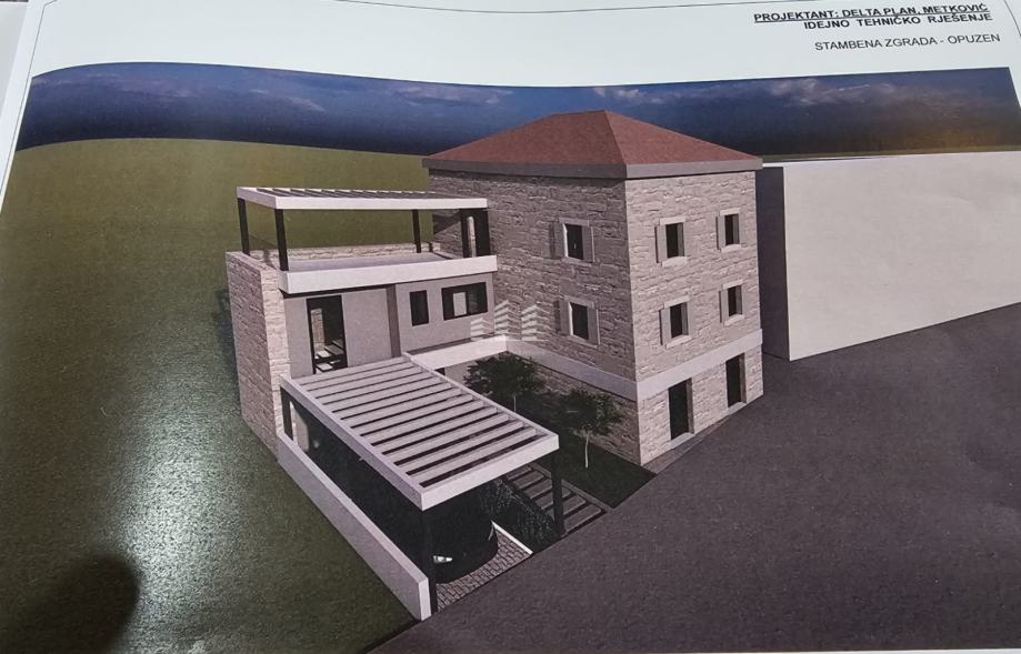 Prodaje se kamena kuća u Opuzenu tlocrtne površine 95m2, na 3 etaže ukupno 235m2 stambene površine, dvorište ima površinu od 50m2.