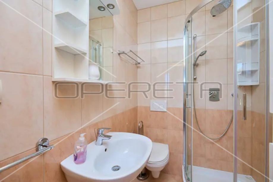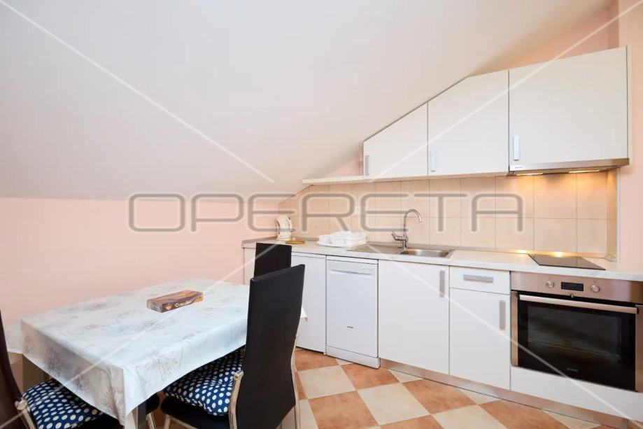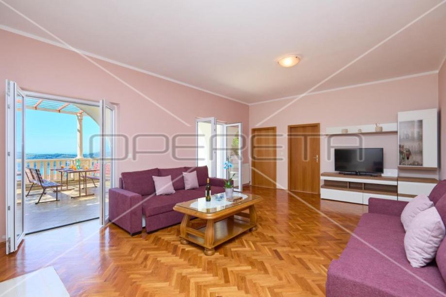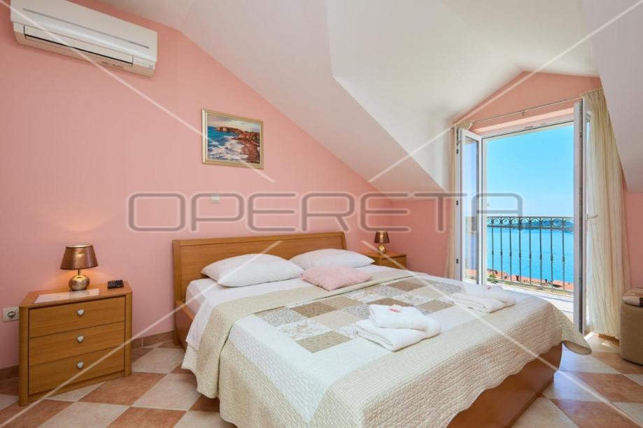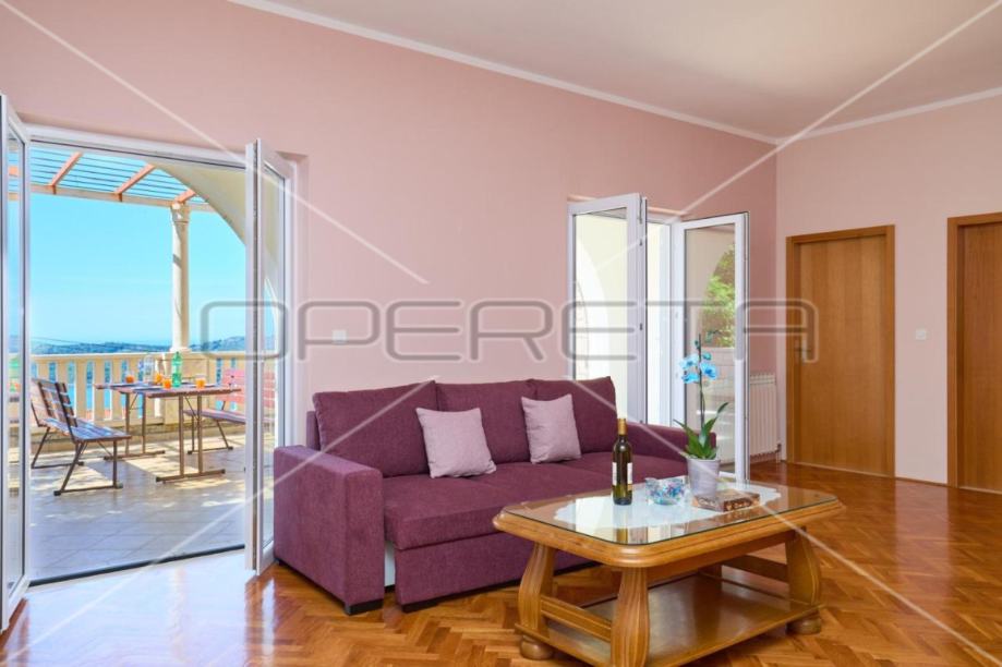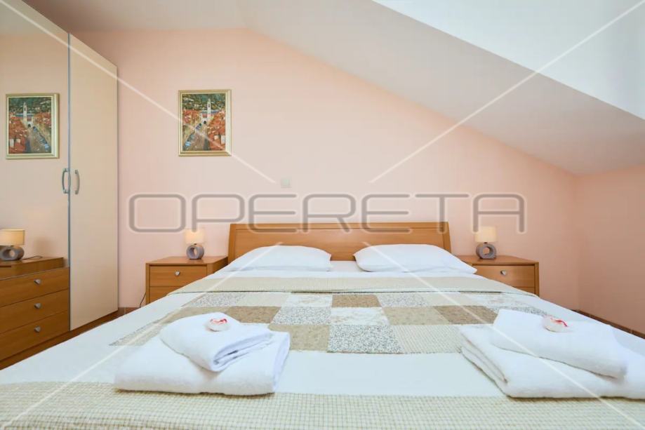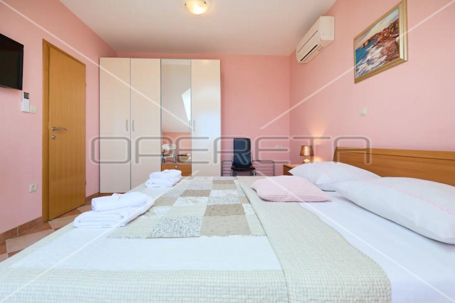• Drugi kat: Dva zasebna apartmana s kupaonicama, svaki s vlastitim balkonom. Ukupna površina kata je 96 m². Trenutno se iznajmljuju turistima, pružajući dodatni prihod.
