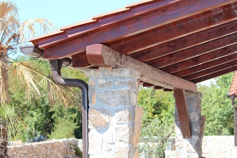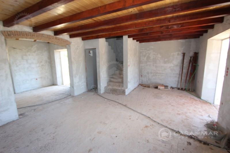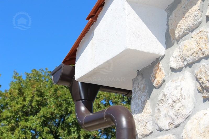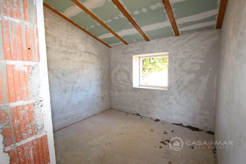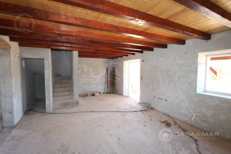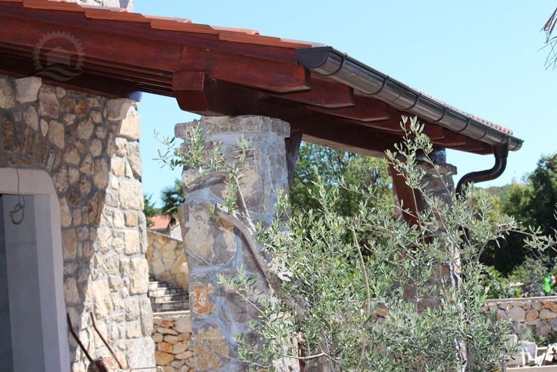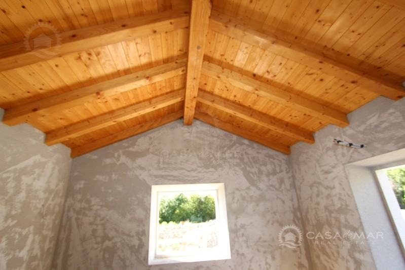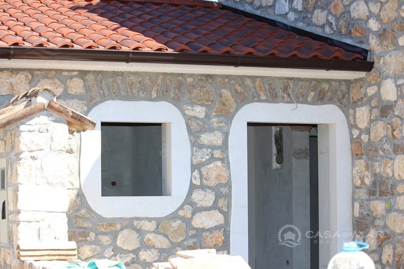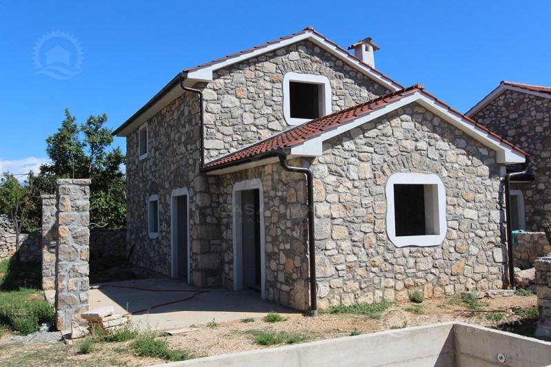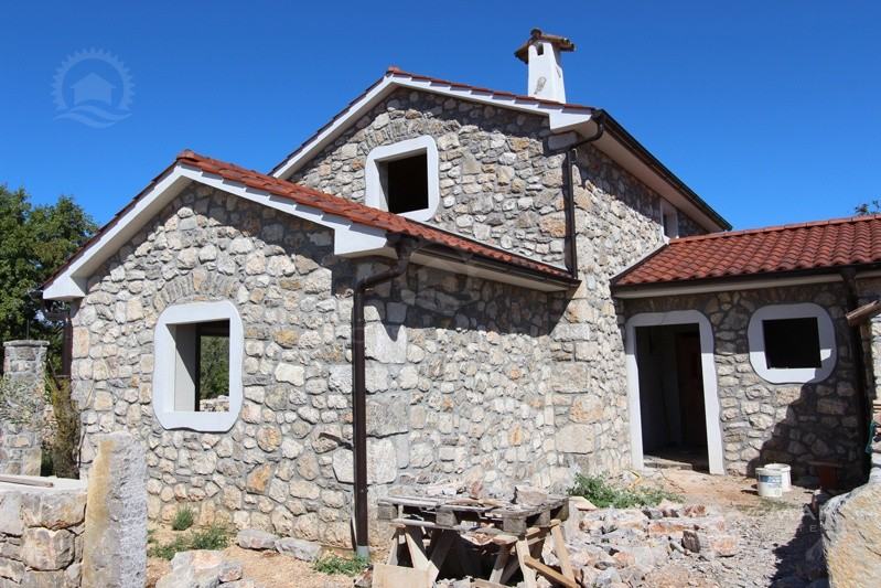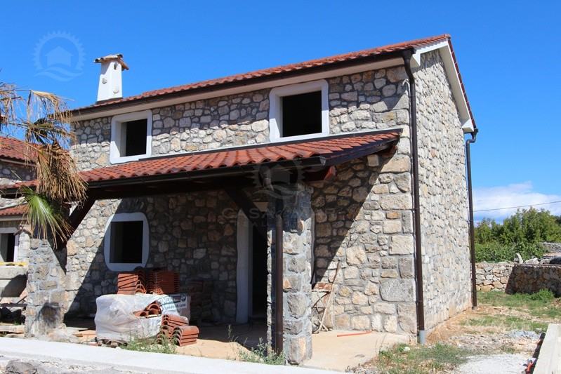 Otok Krk, šire područje, prodaja nove kamene kuće površine 116 m2 sa okućnicom od 385 m2 sa djelomičnim pogledom na more. Nalazi se u visokoj roh bau fazi.
