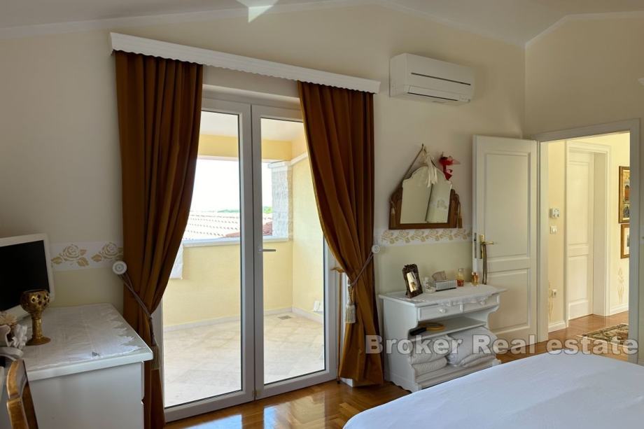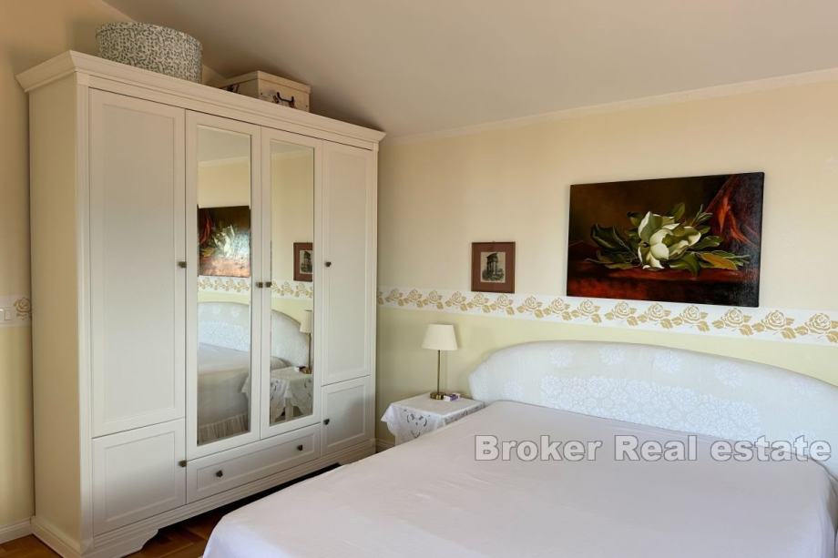Unutarnjim stubištem pristupa se prvom katu koji se sastoji od dvije spavaće sobe i zajedničke kupaonice. Šarmantna lođa nudi utočište na otvorenom, idealno za opuštanje i uživanje u pogledu.