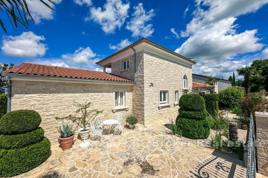 Prodaje se predivna šarmantna obiteljska kuća smještena u blizini Poreča, na mirnoj lokaciji okružena zelenilom i prirodom. Ukupna stambena površina iznosi 265 m2 te se proteže na dvije etaže.