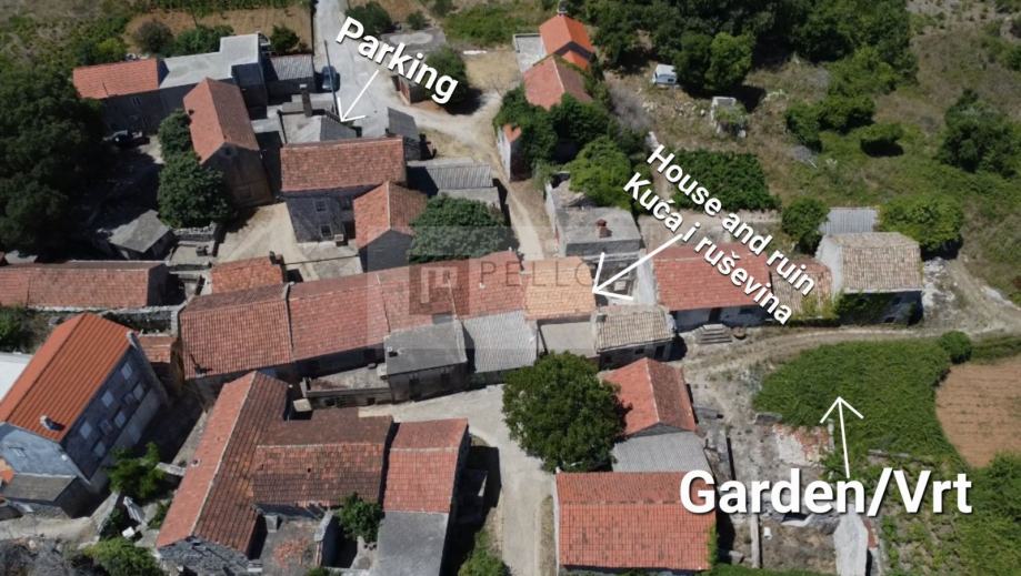 Nekretnini pripada i parking, udaljen 15m od kuće i ruševine, te vrt udaljen 10m od kuće.