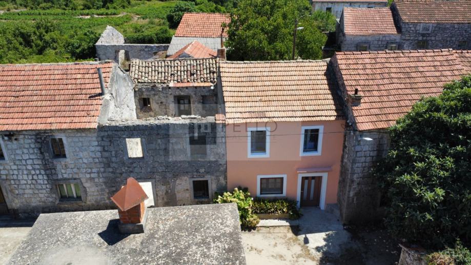 Nekretnina se sastoji od Kuće u nizu, koja je useljiva, sastoji se od prizemlja i kata, ima struju i vodu te je površine 75m2. U prizemlju se nalazi Dnevni boravak, kupaona, ostava te kuhinja dok su na katu 2 spavaće sobe te ostava. Na nju se naslanja kamena ruševina, koju je moguće obnoviti ili na mjestu iste napraviti bazen, terasu, ruševina je povšine 42m2(tlocrtno).