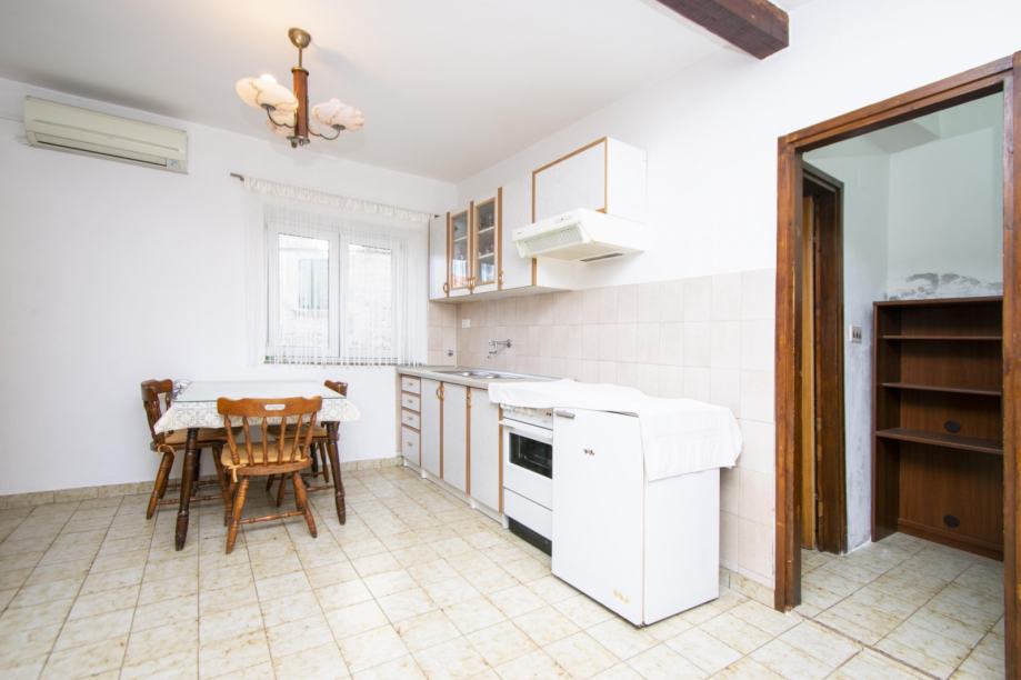 Na prodaju je posebna kuća u povijesnoj jezgri Šibenika, površine 98 m2. Prizemlje kamene kuće ima kuhinju, dnevni boravak i blagovaonicu, te ostavu i kupaonicu. Unutarnje drvene stepenice vode vas na gornju etažu koja ima hodnik i dvije prostrane spavaće sobe. Ova kuća ispunjena je svjetlošću tijekom čitavog dana, a pozicija na kojoj se nalazi omogućuje vam predivan pogled na povijesne šibenske kale.
