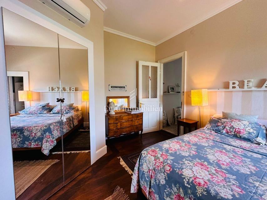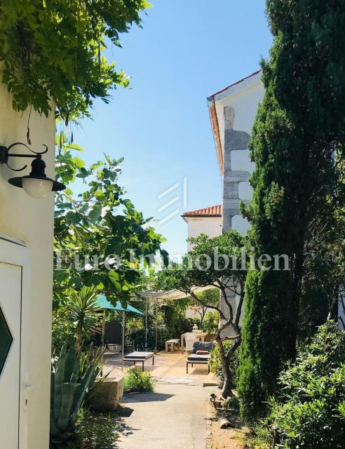 Prodaje se dvojna kamena kuća površine 140 m2 sagrađena na parceli od 406 m2. Kuća se sastoji od prizemlja u kojem su dnevni boravak, kuhinja i blagovaona, kupaonica, hodnik i prostrana terasa s otvorenim pogledom na more. Na katu je još jedna kupaonica te tri spavaće sobe s predivnim pogledom na more. Kuća je kvalitetno renovirana, klimatizirana, opremljena centralnim grijanjem i prodaje se sa svim namještajem i opremom. Na uređenoj okućnici se nalazi i velika garaža.