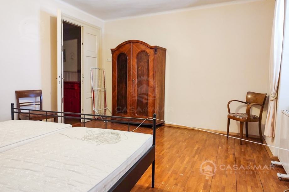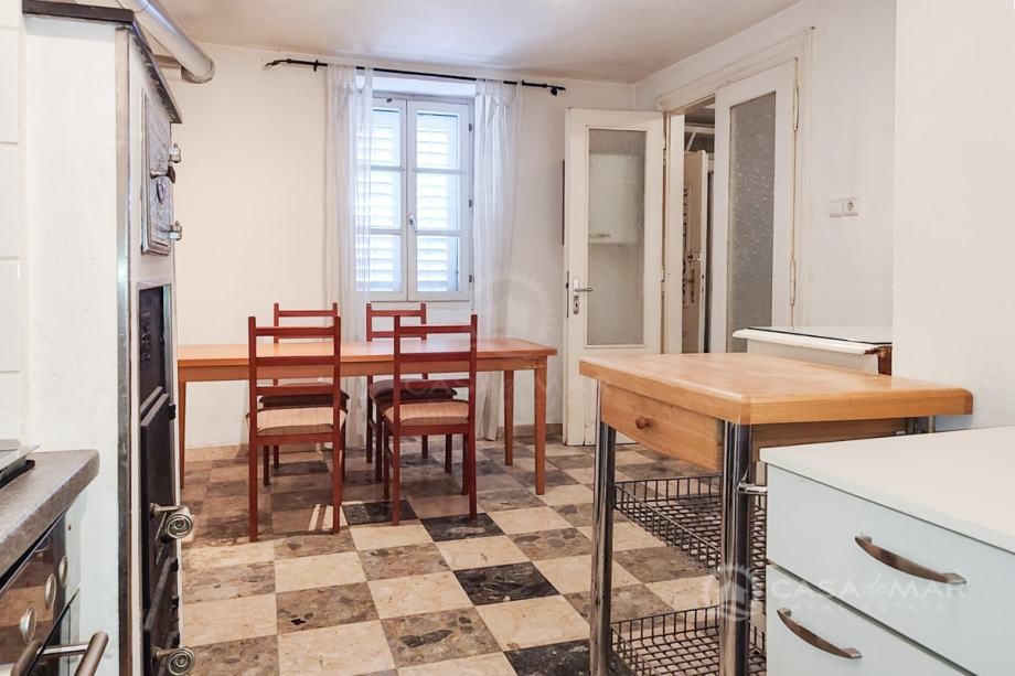 U prizemlju se nalaze kuhinja s blagovaonicom, spremište i toalet. Unutarnjim stepenicama dolazi se na kat s jednom spavaćom sobom i kupaonicom s podnim grijanjem. Na trećoj etaži nalazi se još jedna spavaća soba i spremište. S ove etaže moguć je izlaz na stražnji put koji vodi prema staroj gradskoj jezgri. Kuća ima dva ulaza.