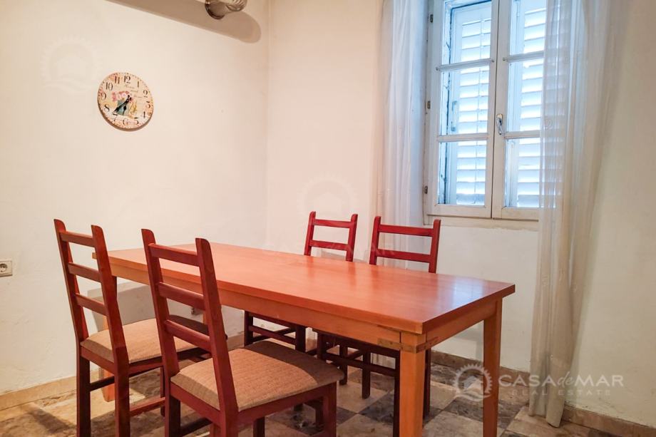 Iz kuće se pruža pogled na more, koje je udaljeno 50 metara. Nalazi se na lokaciji u blizini svih važnijih sadržaja, što je čini pogodnom i za stanovanje i za turistički najam.