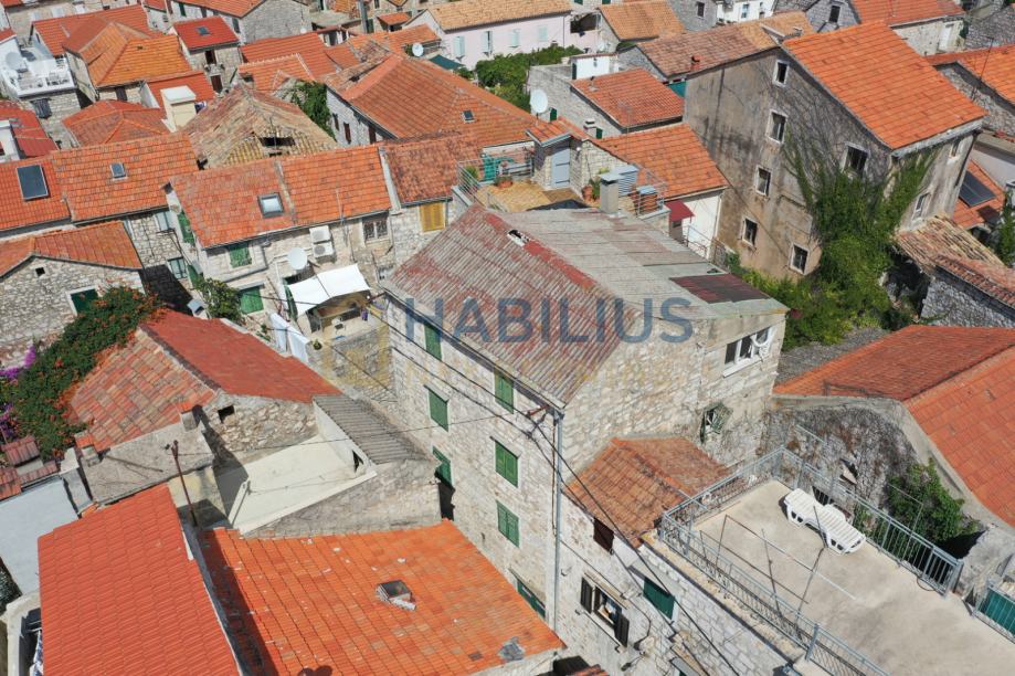 Smještena diskretno u srcu Starog Grada na otoku Hvaru, ova prostrana, ali osamljena kuća čeka na otkrivanje. S ukupnom površinom od 208,53 m2, nudi dovoljno prostora za inovativne renovacije zadržavajući šarm svojih starih kamenih zidova. Prizemlje se prostire na 52,85 m2, dok prvi, drugi i treći kat imaju 50,80 m2, 50,54 m2 i 54,34 m2. Smještena samo 100 metara od luke i nekoliko minuta hoda od najbližih plaža, ova nekretnina predstavlja vrhunsku lokaciju za utočište na obali. Iako zahtijeva potpunu rekonstrukciju, poziva na nove individualne ideje i obećava beskrajne mogućnosti transformacije.