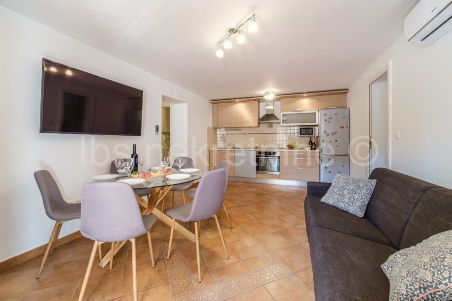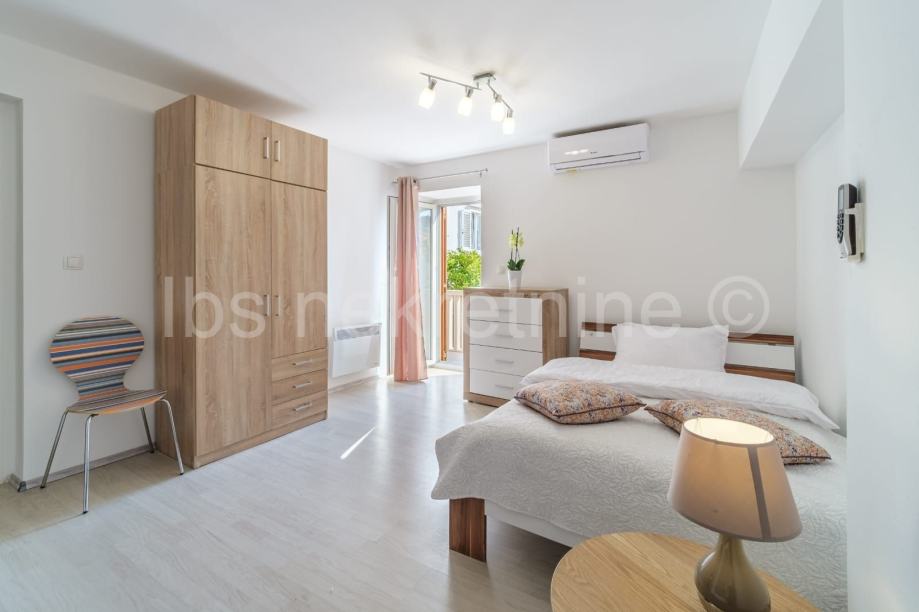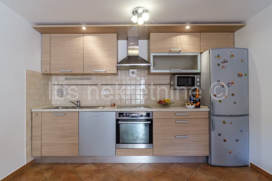 U prizemlju je kuhinja, dnevni boravak, spavaća soba i kupaonica.