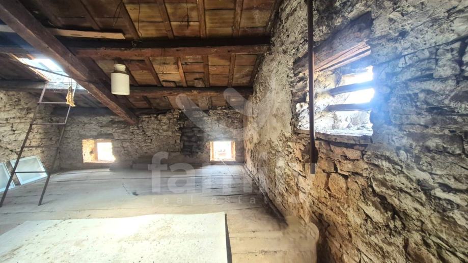 Na prodaju je dvojna kuća, smještena u sredini niza, s lijepim pristupnim putem i urednim vlasništvom. Nekretnina se proteže na tri etaže, svaka površine cca 33 m², te je dodatno povezana s još jednim prostorom u prizemlju od 36 m². Ulazi su zasebni, ali funkcionalno povezani, što pruža više mogućnosti organizacije prostora – bilo za obiteljski život, turistički najam ili kombinaciju jednog i drugog. Sveukupna kvadratura kuće je 209m2. U prizemlju se nalazi hodnik i kuhinja, dok je na katu smješten dnevni boravak i spavaća soba. Prostor se po potrebi može organizirati i kao dvije spavaće sobe, od kojih je jedna izuzetno prostrana. Drugi kat nalazi se pod kosim krovom, s dnevnim otvorima koji osiguravaju obilje prirodnog svjetla. Kameni zidovi i autentična struktura daju poseban šarm te nude velik potencijal za uređenje u rustikalnom ili modernom istarskom stilu. Ispred ulaza nalazi se malo, šarmantno ograđeno dvorište koje pruža intimu i prostor za opuštanje. Uz kuću su smješteni i pomoćni objekti koji su trenutno u funkciji drvarnice, konoba i dio gdje je trenutno smještena kupaonica. Posebna vrijednost ove nekretnine je i dodatno građevinsko zemljište koje se prodaje uz kuću. Zemljište ima direktan pristup s asfaltirane ceste, a infrastruktura se nalazi uz samu cestu. Sveukupna kvadratura građevinske čestice je 590 m2. Na parceli se nalazi nekoliko stabala maslina, šipak, smokva i razne voćke, dio je uređen kao vrt, a na kraju parcele smješten je i mali kokošinjac. Nekretnina odiše šarmom, nalazi se na mirnoj lokaciji te nudi brojne mogućnosti uređenja i prenamjene prema vlastitim željama.