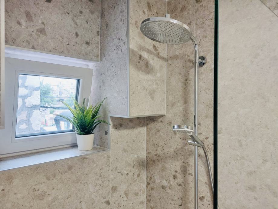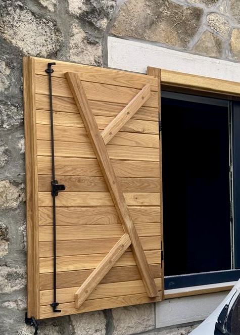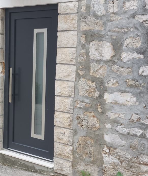 U svakoj prostoriji kuće je prirodno svjetlo. Stolarija je rađena po mjeri s trostrukim izo staklom, vanjska strana antracit/unutarnja bijela. Škure su nove, stavljen 2025. od punog prirodnog hrasta.