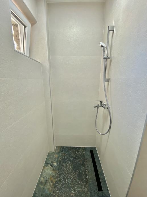 Kuća je s debelim kamenim zidovima što joj daje dalmatinski šarm, kompletno je renovirana 2022/2023., struja, voda, odvodi, ugrađeno je Danfoss podno grijanje na oba kata. Sva rasvjeta je kvalitetna Phillips i Eglo. Međukatna konstrukcija je betonska kao i stepenište koje vodi do krovne terase (hidroizolirana).
