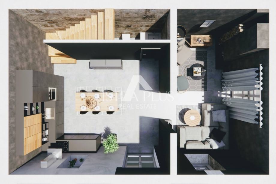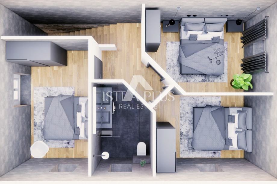 Prizemlje kuće sastoji se od predivnog dnevnog boravka sa kaminom te izlazom na terasu i uređeno dvorište, kuhinje sa blagovaonom te toaleta, dok se kat kuće sastoji od tri spavaće sobe, svaka sa klima uređajem te centralnim kupatilom.