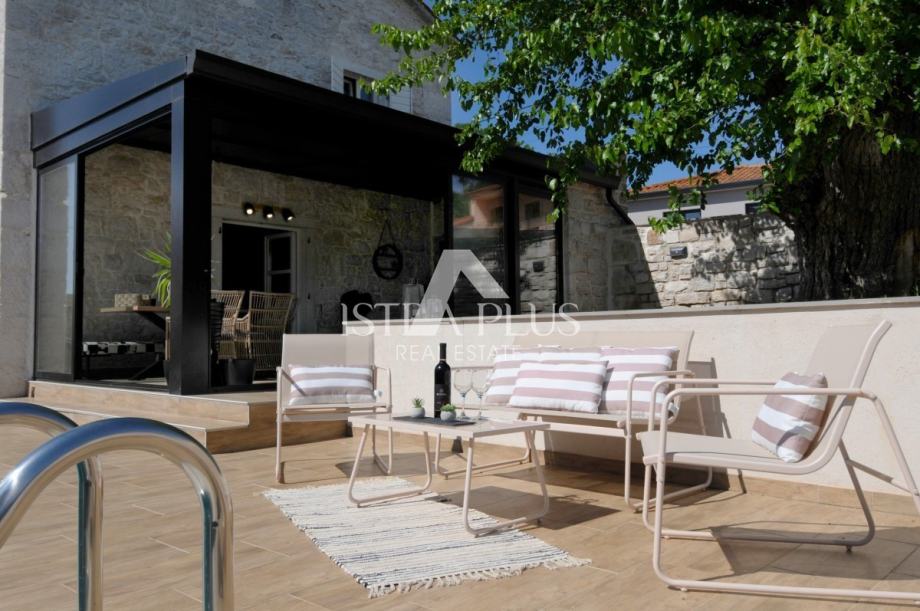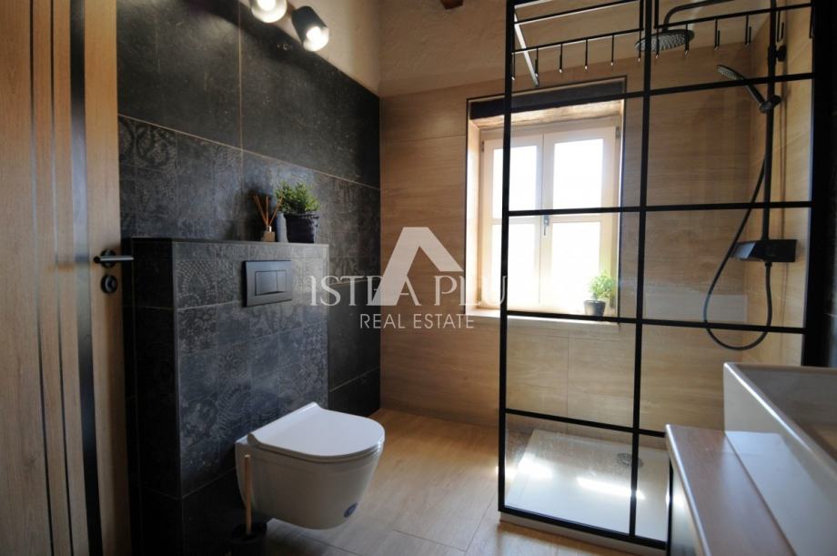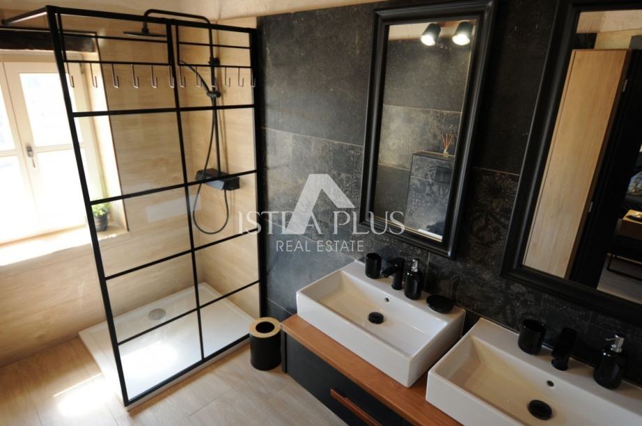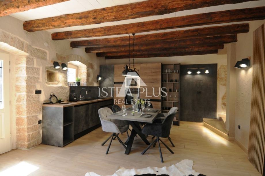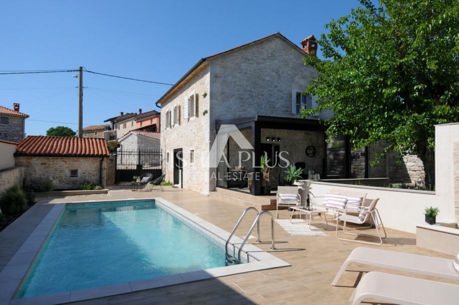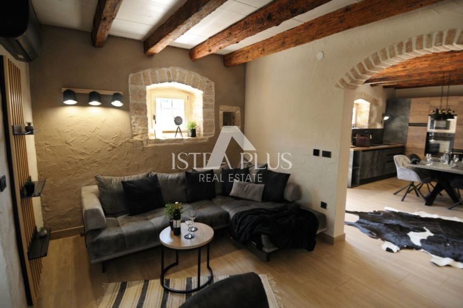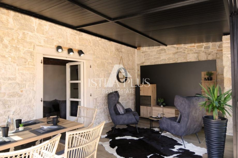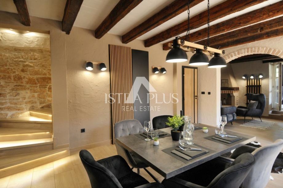 Kuća se prodaje kompletno renovirana i namještena u kombinaciji tradicionalne istarske kamene kuće u spoju sa modernom funkcionalnošću. U kući je postavljeno podno grijanje te klime u svim prostorijama - u svakoj spavaćoj sobi te u dnevnom boravku.