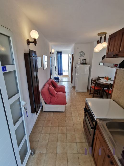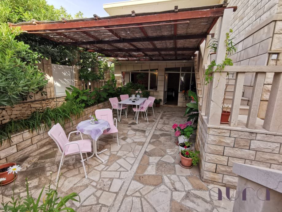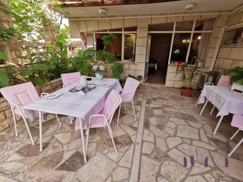 three-room apartment on the ground floor for the owner of the villa of 85 m2. All apartments are fully equipped and ready for the tourist season. Three apartments are two-roomed, and two are one-roomed, ranging in size from 45m2 to 55m2. Each apartment has a living room, dining room, kitchen, bathroom with toilet, separate entrance and own terrace. In front of the larger building is a spacious swimming pool with a view of the sea.