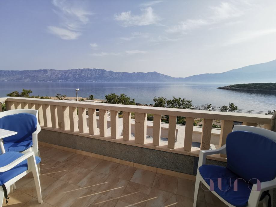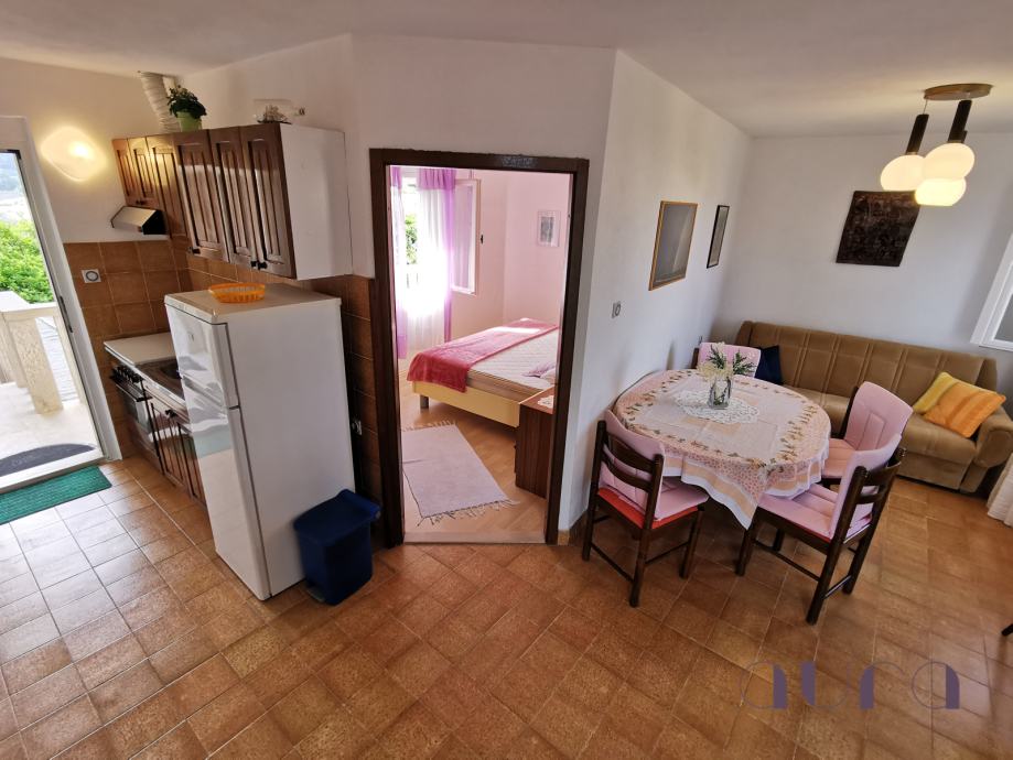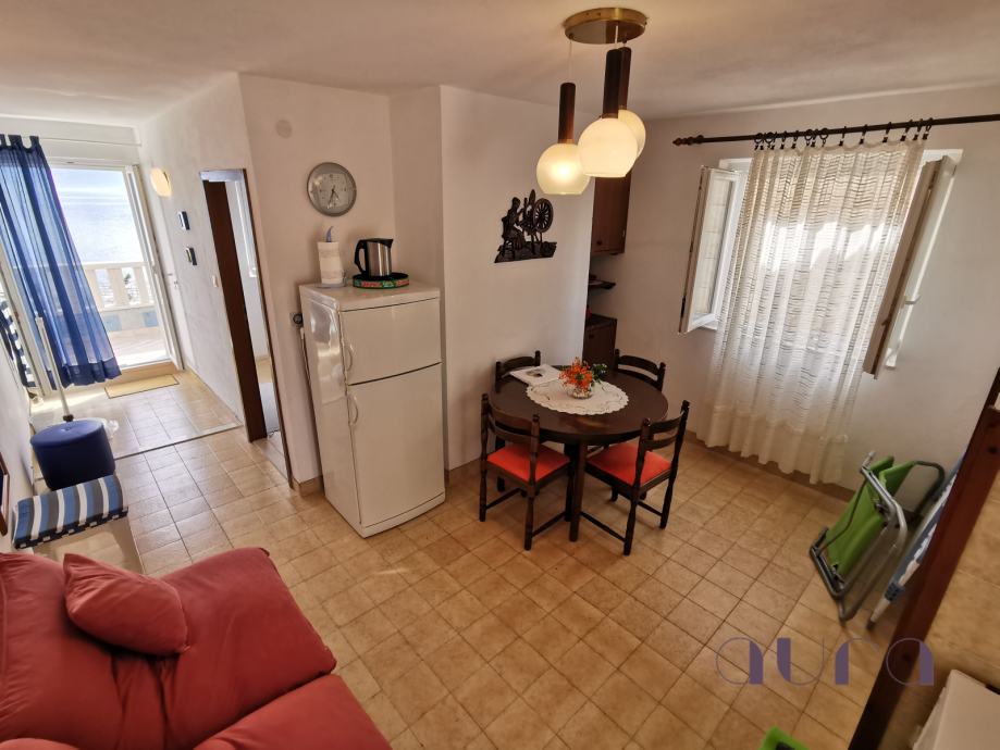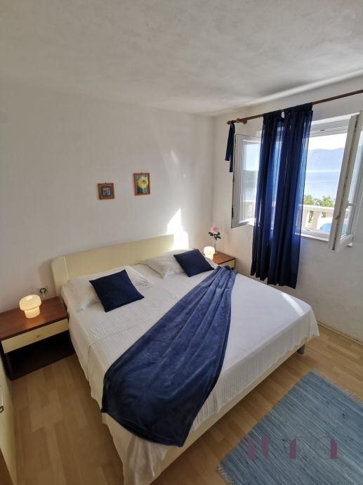 Veći objekt ima još tri apartmana s pogledom na bazen i more, plus trosobni apartman u prizemlju za vlasnika vile od 85m2. Svi apartmani su potpuno opremljeni i spremni za turističku sezonu. Tri apartmana su dvosobna, a dva su jednosobna i veličine su od 45m2 do 55m2 Svaki apartman ima dnevni boravak, blagovaonu, kuhinju, kupatilo sa wc-om, zaseban ulaz i vlastitu terasu. Ispred većeg objekta je prostrani bazen sa pogledom prema moru.